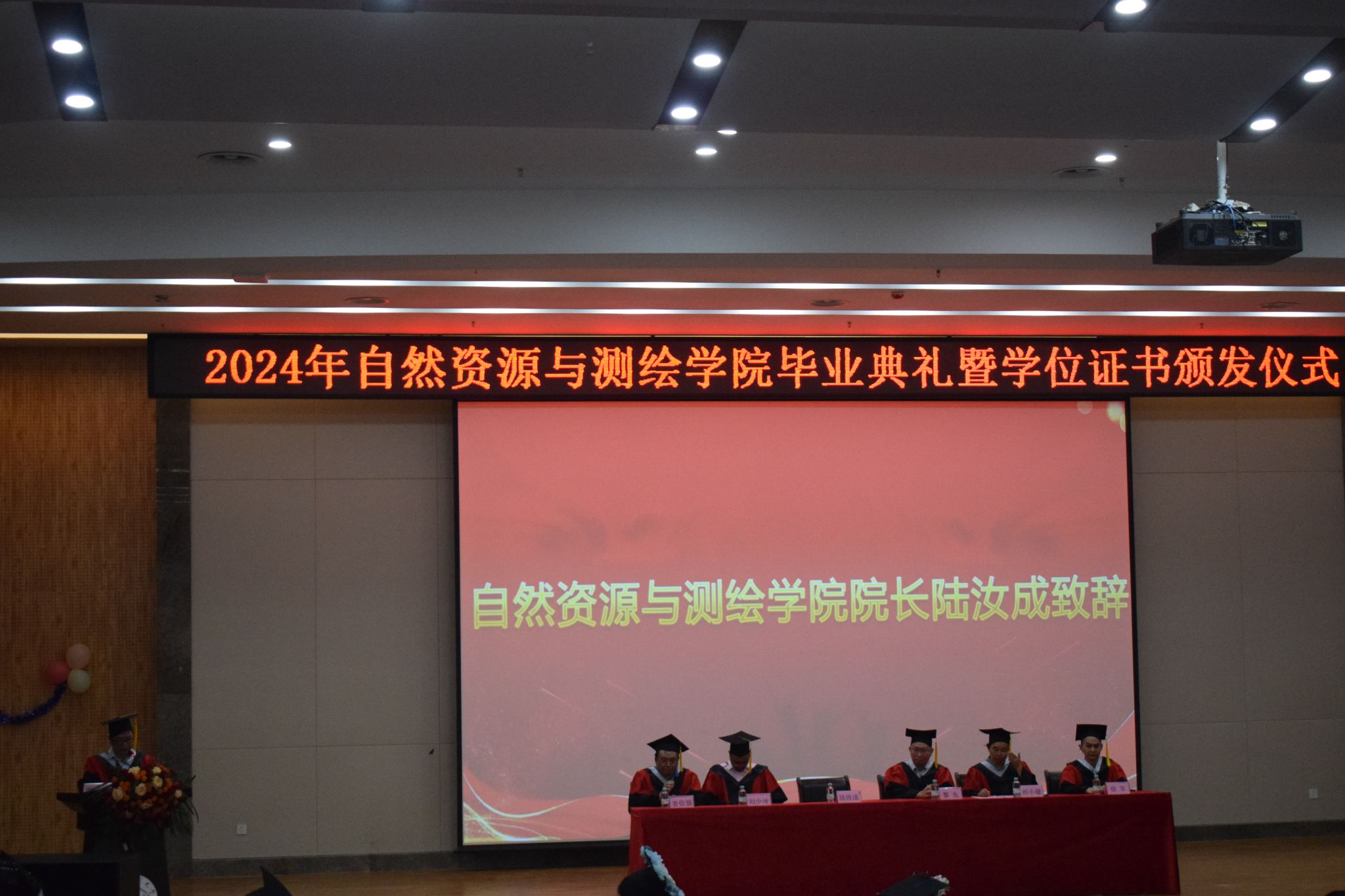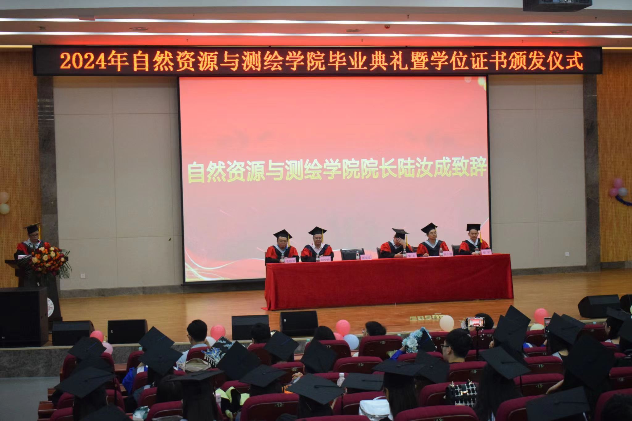 骊歌声渐起,依依思源情。又是一年凤凰花开,2024届学子怀揣梦想,为青春加冕,为梦想壮行。6月25日下午,自然资源与测绘学院在图书馆报告厅举行2024年毕业生毕业典礼暨毕业证书颁发仪式。自然资源与测绘学院领导黎先、陆汝成、莫雅兰、杨小雄,学位评定委员会委员、各系负责人,教师代表、家长代表及2024届全体毕业生参加毕业典礼。典礼由自然资源与测绘学院党委副书记、纪委书记莫雅兰主持。