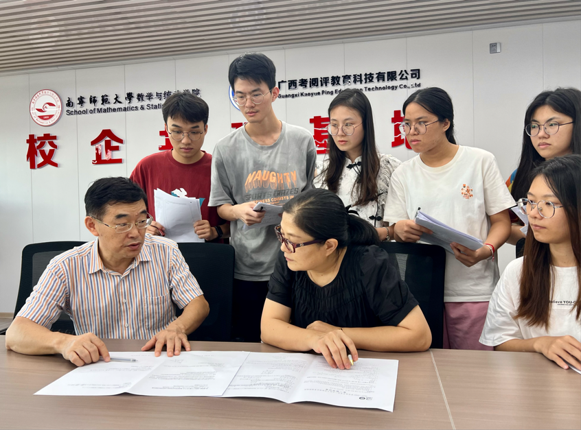 为了进一步推动考阅评校企合作基地的发展,7月7日,深圳外国语完美(中国)袁智斌教授到数学与统计学院与广西考阅评教育科技有限公司校企合作基地指导工作。