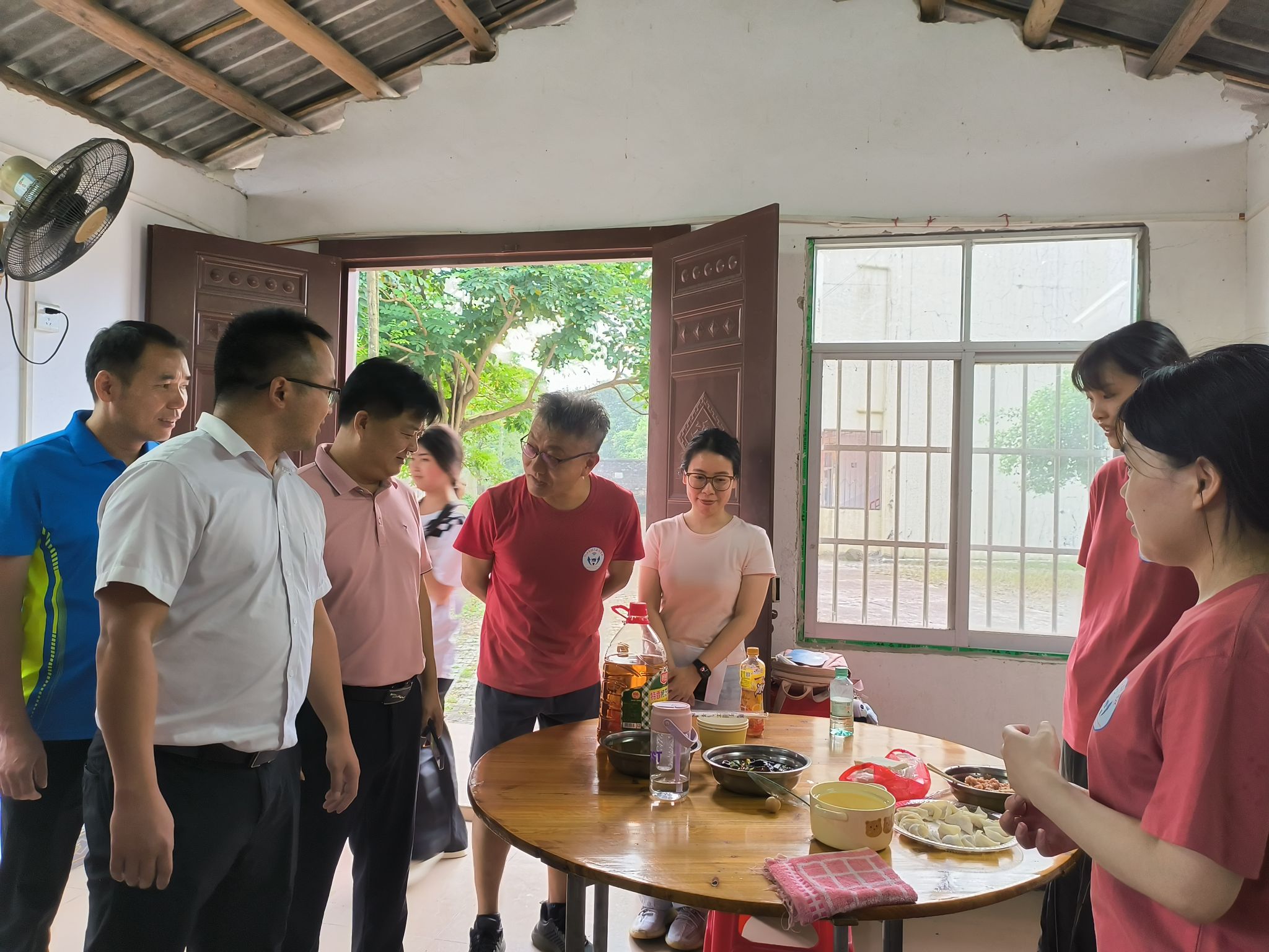 7月9日下午,扶隆镇党委委员、副镇长韦纯良、扶隆镇党委委员、组织委员覃晓等一行四人来到那勤中学看望南宁师范大学物流管理与工程学院实践团。扶隆镇领导对实践团的到来表示了热烈欢迎,他们前往食堂、宿舍等实地查看,全面了解实践团的生活情况及活动需求,和实践团的师生们进行了深入交流,对实践团后续活动的开展提出了宝贵的意见。