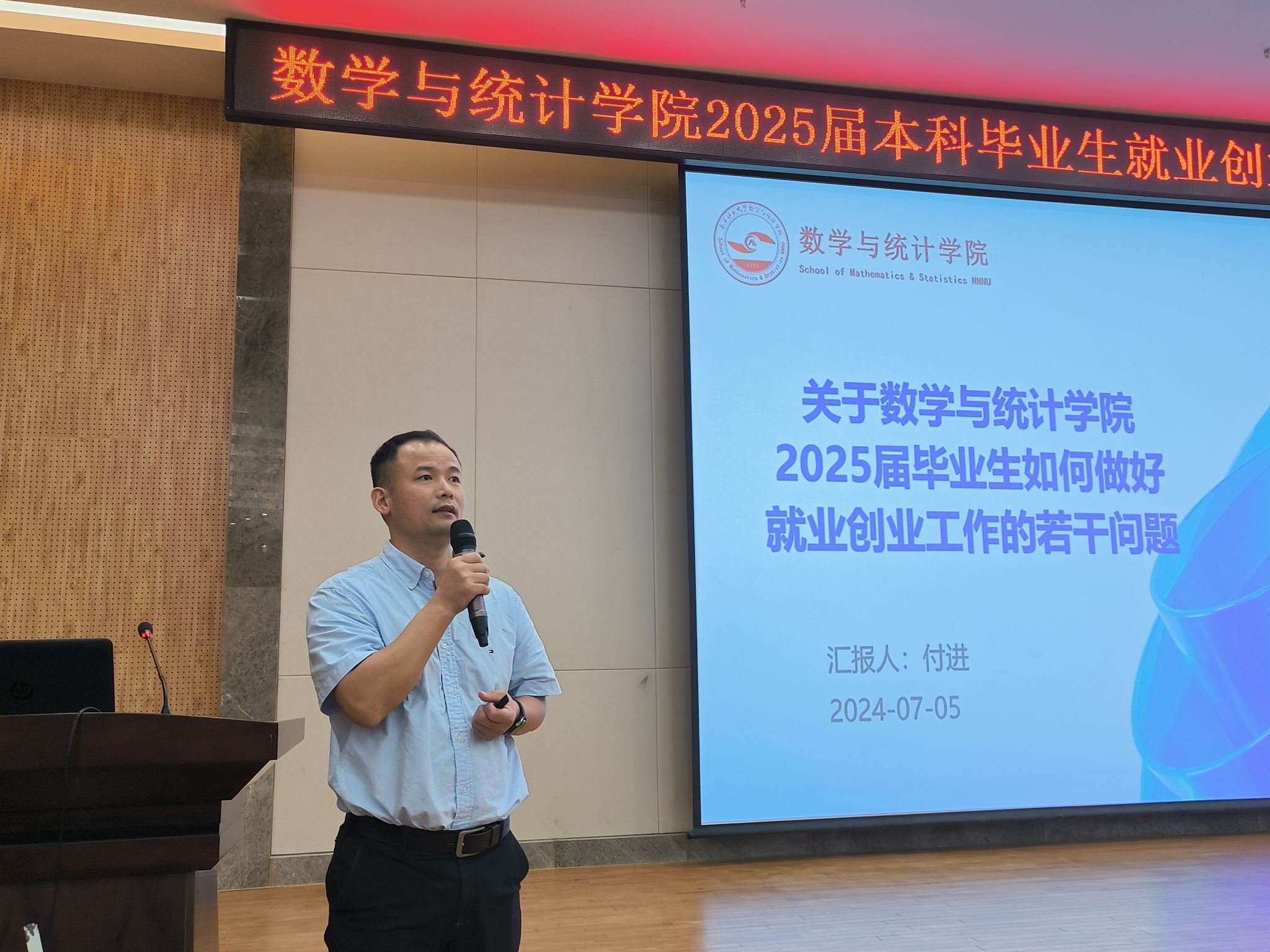 7月5日,数学与统计学院在武鸣校区图书馆报告厅举办2025届本科毕业生就业创业动员大会,数学与统计学院党委付进副书记、韦扬江副院长、2021级班主任、全体辅导员以及2025届本科毕业生同学参加本次会议。