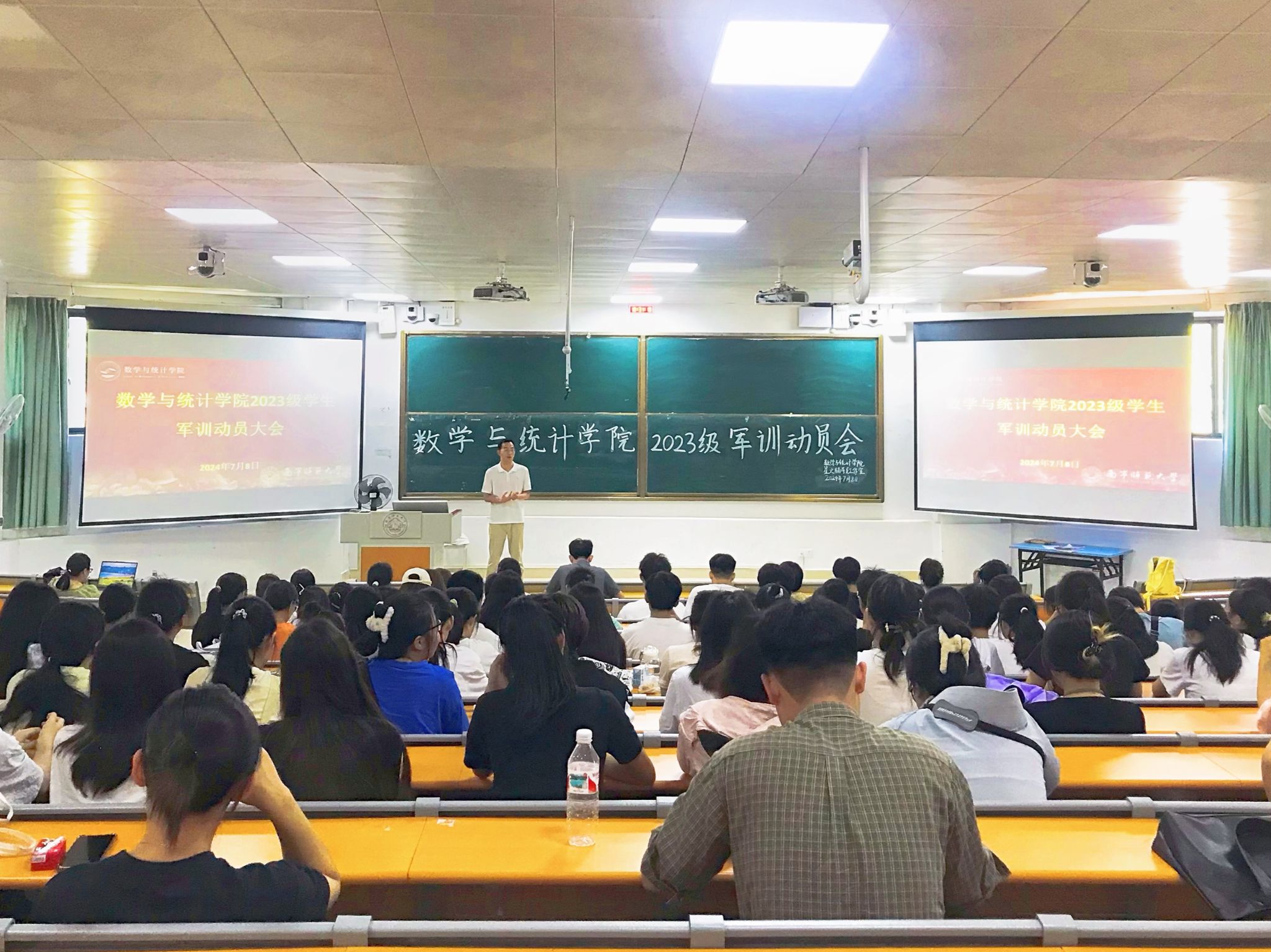 7月8日上午,数学与统计学院于武1-114教室召开了2023级学生军训动员大会。数学与统计学院辅导员梁卡霖老师、第生辉老师、何振飞老师及2023级各班学生干部参加本次会议。