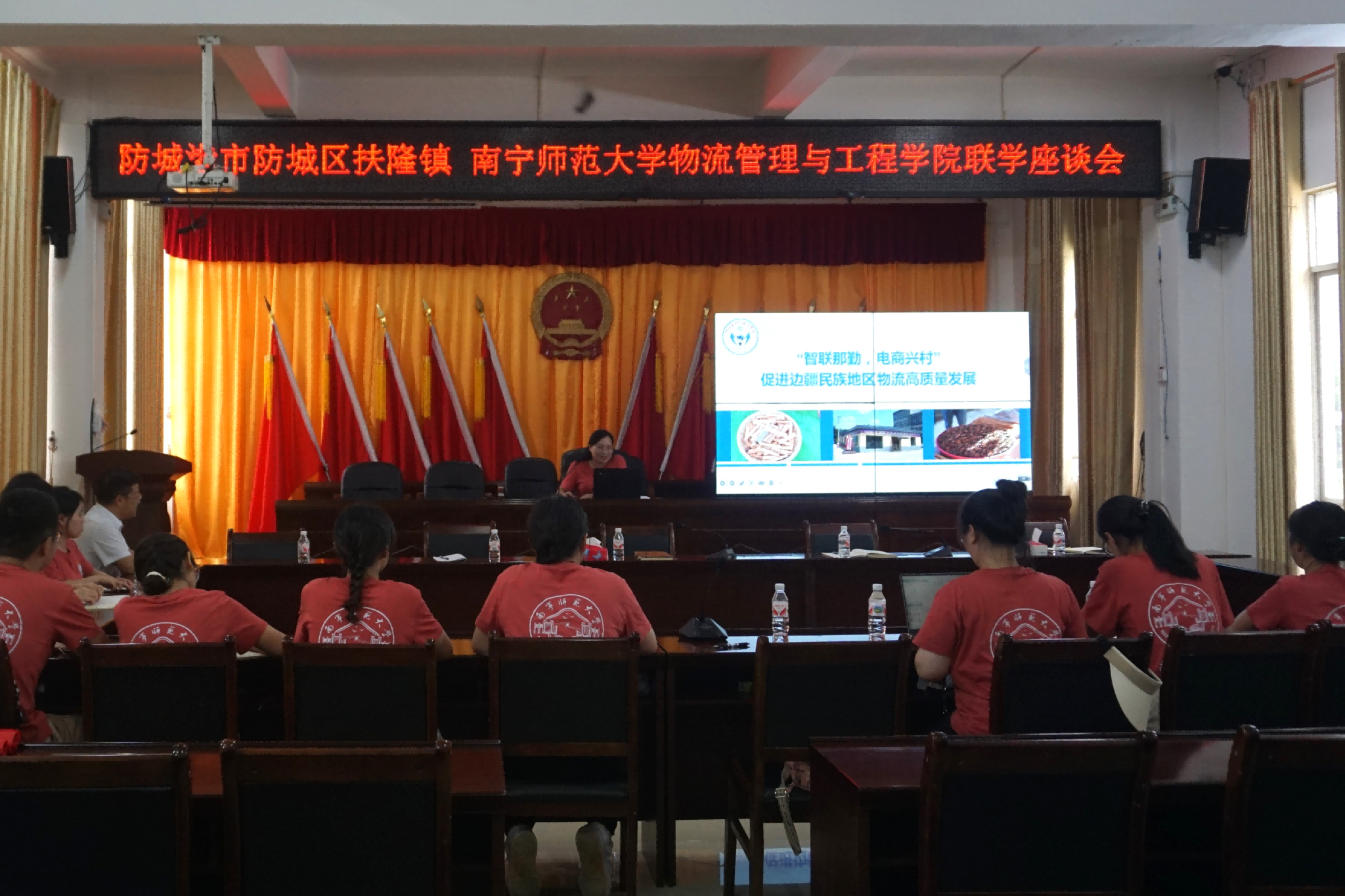 7月12日,物流管理与工程学院暑期“三下乡”社会实践团成员与中共防城区扶隆镇委员会开展“智慧物流助力产业发展,共绘乡村振兴美好蓝图”联学座谈会。扶隆镇党委书记陈设、镇党委委员、组织委员覃晓、镇团委负责人陈晓雯、镇党政办副主任曾李瑛和物流管理与工程学院暑期“三下乡”实践团成员参加了本次联学座谈会。