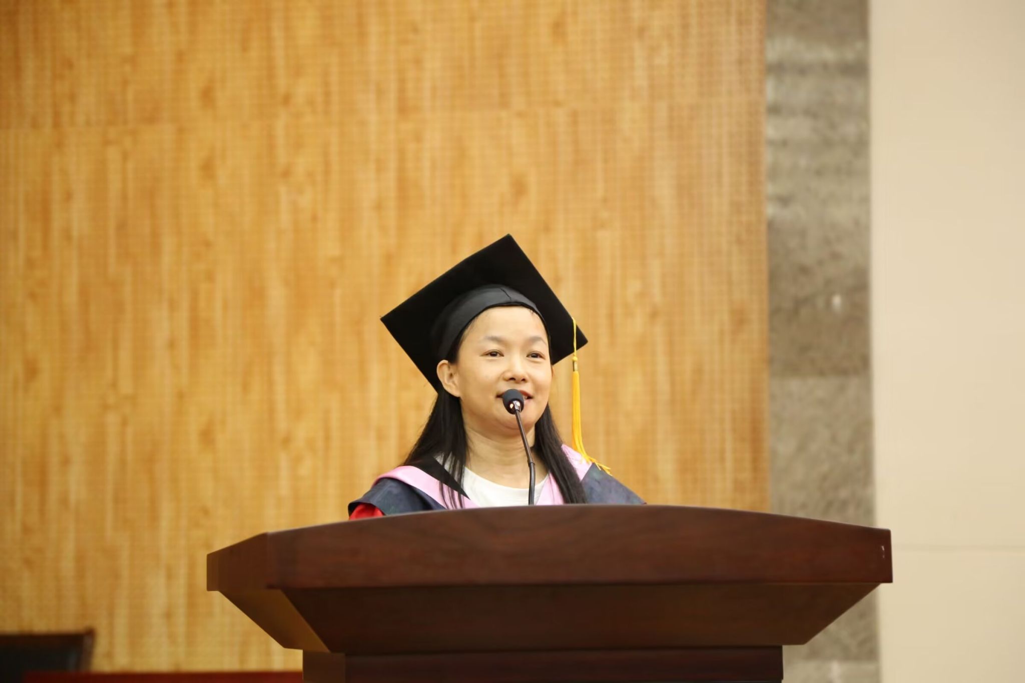 教师代表马小雅老师勉励同学们在未来的人生道路上,要拥抱变化,保持钝感力,永远年轻、永远保持热爱、永远在路上。