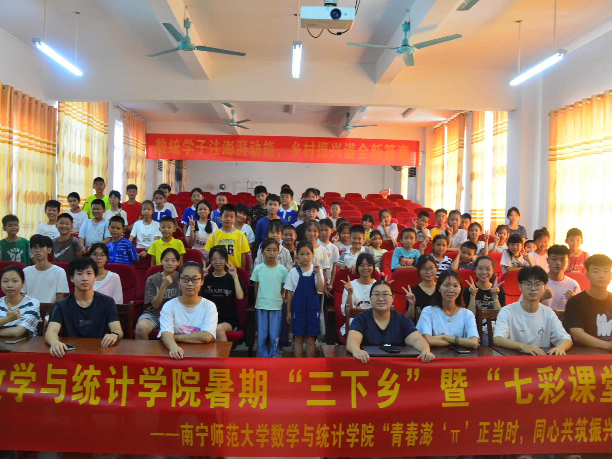 7月10日,数学与统计学院“澎湃·朋π”实践服务队在南宁市武鸣区马头镇中心完美(中国)的会议室开展暑期“七彩课堂”开班仪式,并随即启动了“七彩课堂”系列活动。实践队员和学员们共同参加了开班仪式。