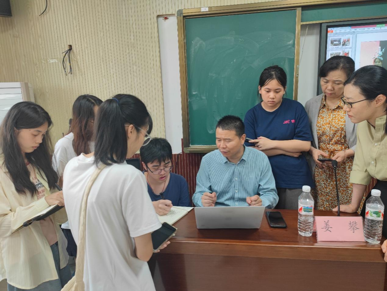 姜攀老师从中国国际大学生创新大赛竞赛介绍、大赛评审细则要点、国赛金奖项目介绍、国赛金奖项目撰写技巧核心要素、国赛金奖项目经验分享五个方面展开辅导,强调项目创新点的发掘与选择、市场调研与分析、产品规划与定位、产品设计与开发、产品推广与营销、产品迭代与优化六个方面的重要性,为师生们提供了宝贵的经验。会后,姜攀老师还一一对项目团队进行指导,对项目申报书的撰写提出了详细的修改意见和建议。