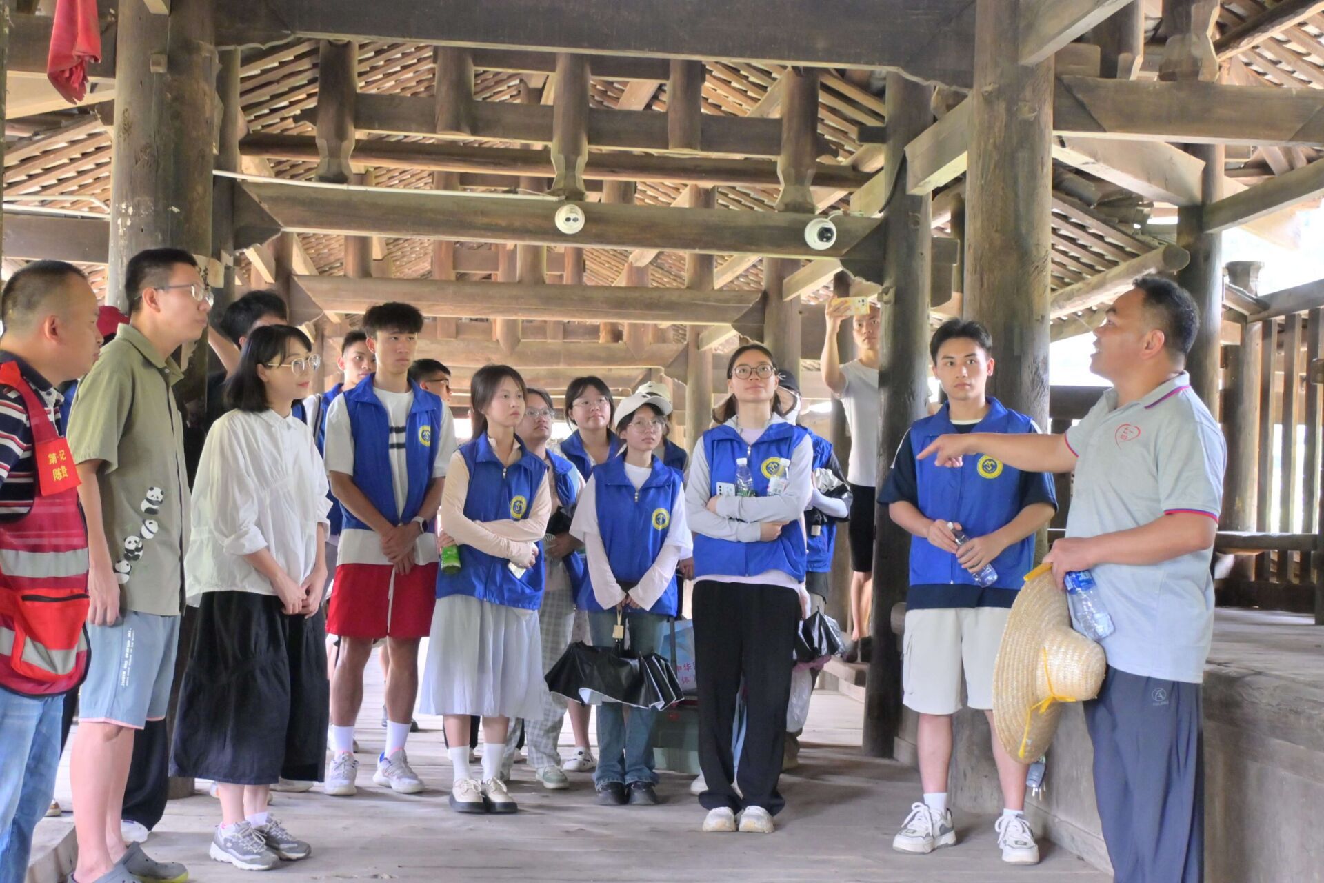 王凌书记为大家生动讲解了侗寨文化,以老村支书的角度给大家讲述了岜团村如何在党的领导下成功脱贫,并走出了旅游兴村的成功道路。首先他带领大家到岜团家风家训馆,从“千古好家风”“侗寨好家规”“传承好家教”三个篇章向同学们展示岜团村民的良好家风家训。随后他又带领大家参观了岜团风雨桥,岜团风雨桥是古今中外,独一无二的民间桥梁,是我国桥梁建筑的典范。此外他还专门向大家讲解了侗族古代的“款”文化,“款”约是侗族村寨为实现自我管理而制定的村规民约条文,“款”约蕴含“真善美”内涵和崇俭尚廉思想。家风家训馆以及“款”文化为推进基层党组织的党风廉政建设发挥文化育人的特殊功用。他还带领大家游览情人坡、祈福台、五针松古树群等著名景点,分享景点背后的精彩传说与故事。