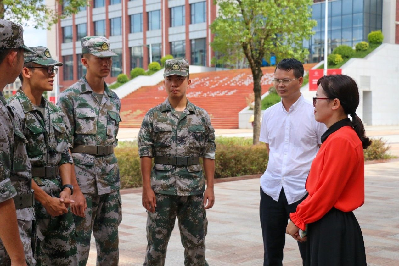 最后,学院领导、老师们为教官和同学们送上解暑饮品,并与同学们进行亲切交流,提醒大家注意做好防晒防暑工作。