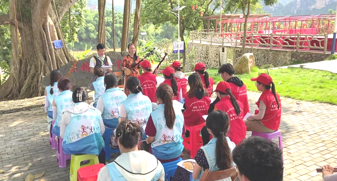 实践活动中,同学们体验了舂糍粑、制作簸箕宴,邀请当地两位老师现场教学壮族非遗乐器“天琴”,并共同在现场演唱了《花山迎客歌》。两位少数民族学生身着民族服饰担任主播,用直播的方式将活动过程记录下来,让更多人了解当地极具特色的民族文化。活动期间,累计开展直播5场,吸引2018人次观看,累计点赞量222665次。