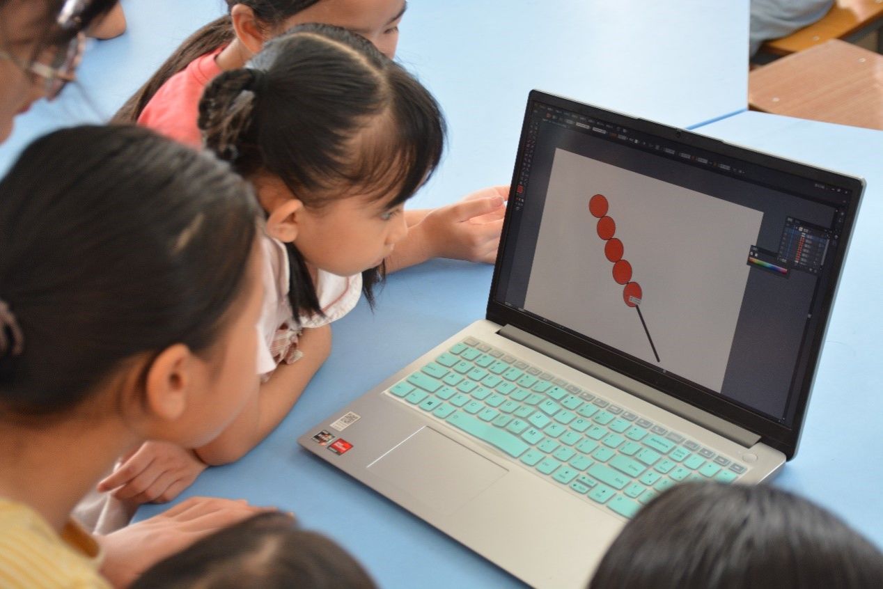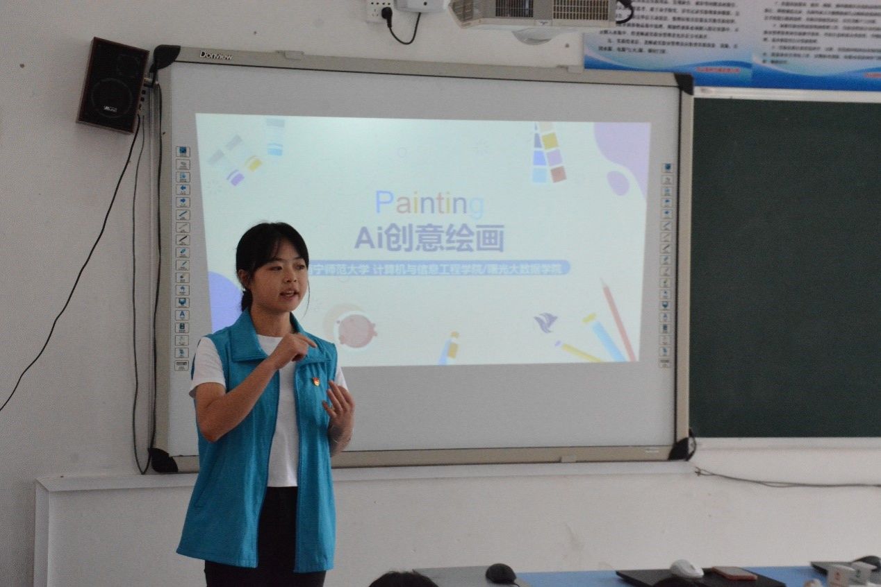 7月18日,计算机与信息工程学院/曙光大数据学院2024年暑期“三下乡”“翔鹭”智汇民族实践团队在南宁市马山县林圩镇合理小学开展adobe illustrator(下面简称Ai)创意绘画和机器人体验课。