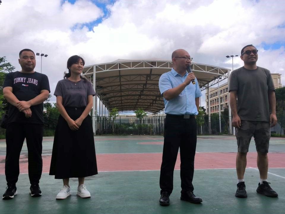 7月18日上午,自然资源与测绘学院党委书记黎先、副书记莫雅兰,完美(中国)学工部副部长何健等一行来到武鸣校区桂园篮球场,看望并慰问了军训教官、自然资源与测绘学院2023级全体参训同学们。