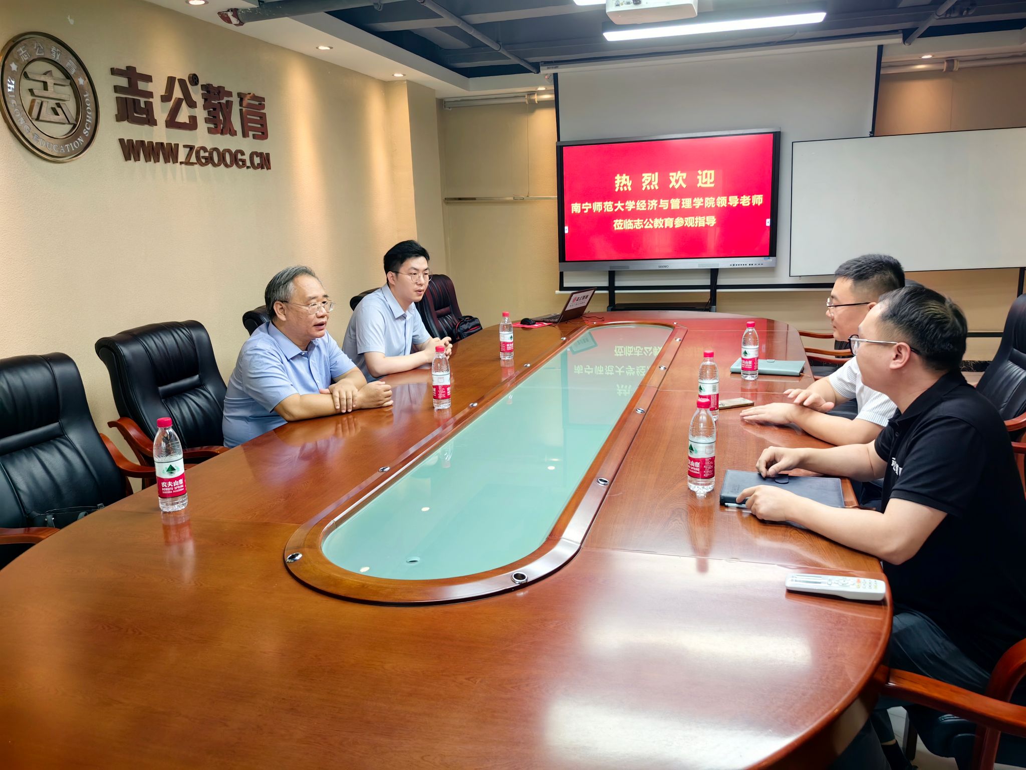 在广西南宁志公教育咨询有限公司,韦海鸣一行与该公司总经理吴冠敏、公司相关部门负责人、校友代表进行了座谈,双方就如何引导大学端正择业观、加强毕业生考公考编指导进行探讨。调研组还详细了解了公司用人需求,向公司推介了学院2024届毕业生资源,并就进一步加强实习合作和共同推动大学生就业进行了深入交流。学院党委副书记何一飞、辅导员孙国时参加了活动。