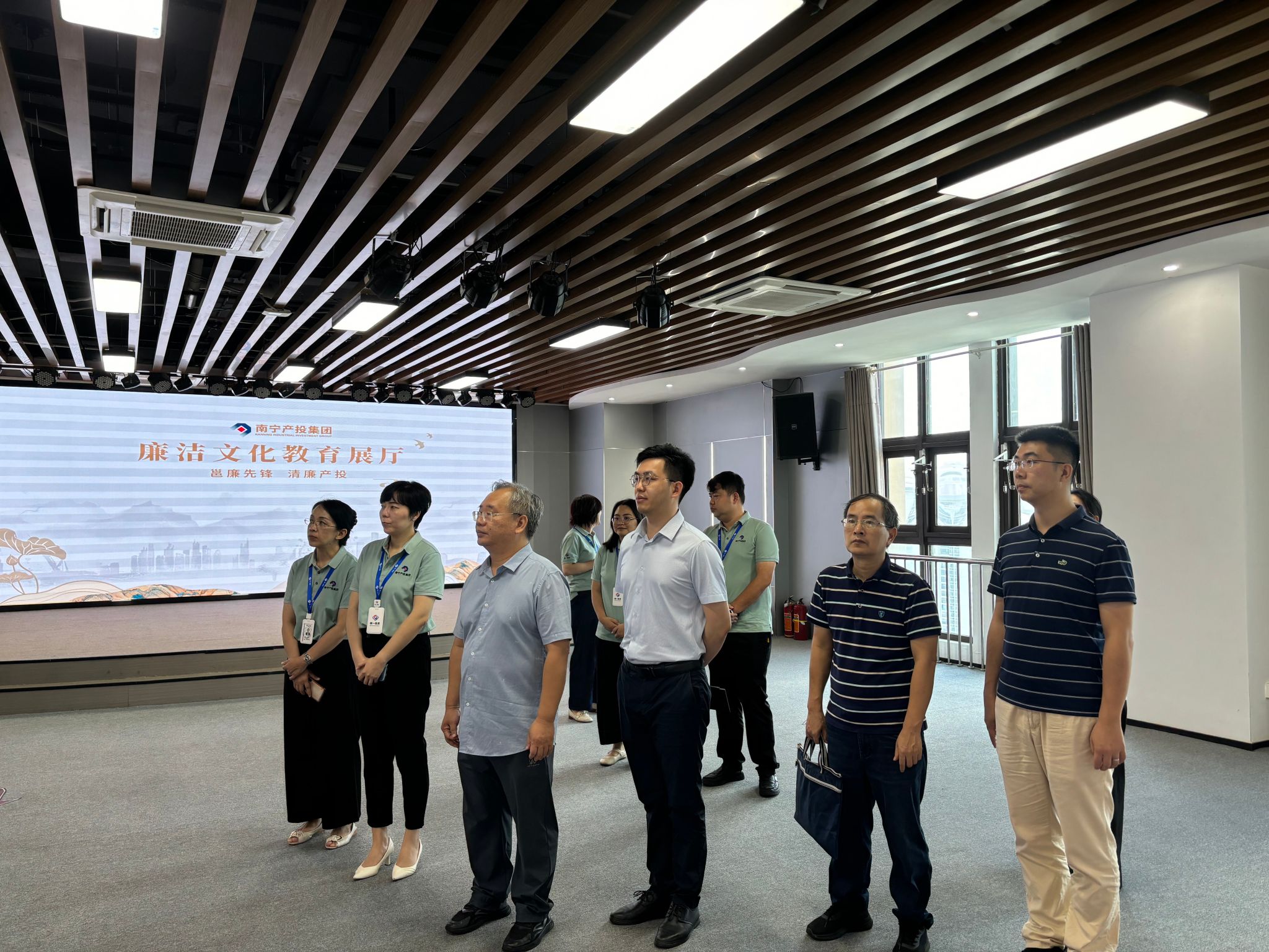 在南宁产投统一投资管理有限责任公司,韦海鸣一行与该公司董事长、学院优秀校友尤志婷及该公司领导、相关部门负责人举行了座谈会。调研组认真了解企业发展概况、用人需求,介绍了学院毕业生资源,分析了学院毕业生与公司需求配匹度,并就发挥公司资源帮扶学院2024届毕业生就业进行了深入探讨。双方还就进一步加强党建领域交流,优化学生实习、产学研合作等进行了交流。会后,双方举行实习实训基地授牌仪式,调研组还参观了南宁产投集团廉政文化教育展。学院党委副书记何一飞、学院副院长丘兆逸、学院教师程皓和辅导员孙国时、李宏晨参加了活动。