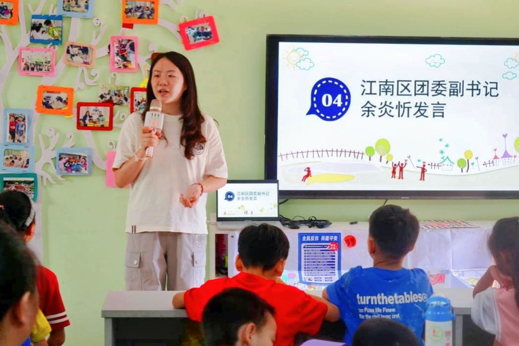 为回顾2024年暑期“三下乡”社会实践活动历程,展现主要成果,7月16日下午,我校易班学生工作站、学生公寓自治管理委员会“夏日筑梦”志愿服务队分别在江南区二桥西社区、凤凰社区举办以“夏日筑梦,茁壮成长”为主题的成果展示活动。江南区团委副书记余炎忻、江南区青年志愿者协会会长杨雪,我校学工部(处)黄绍保、罗夏老师出席活动,近90名学生、家长、社区工作者及实践队员参加本次活动。