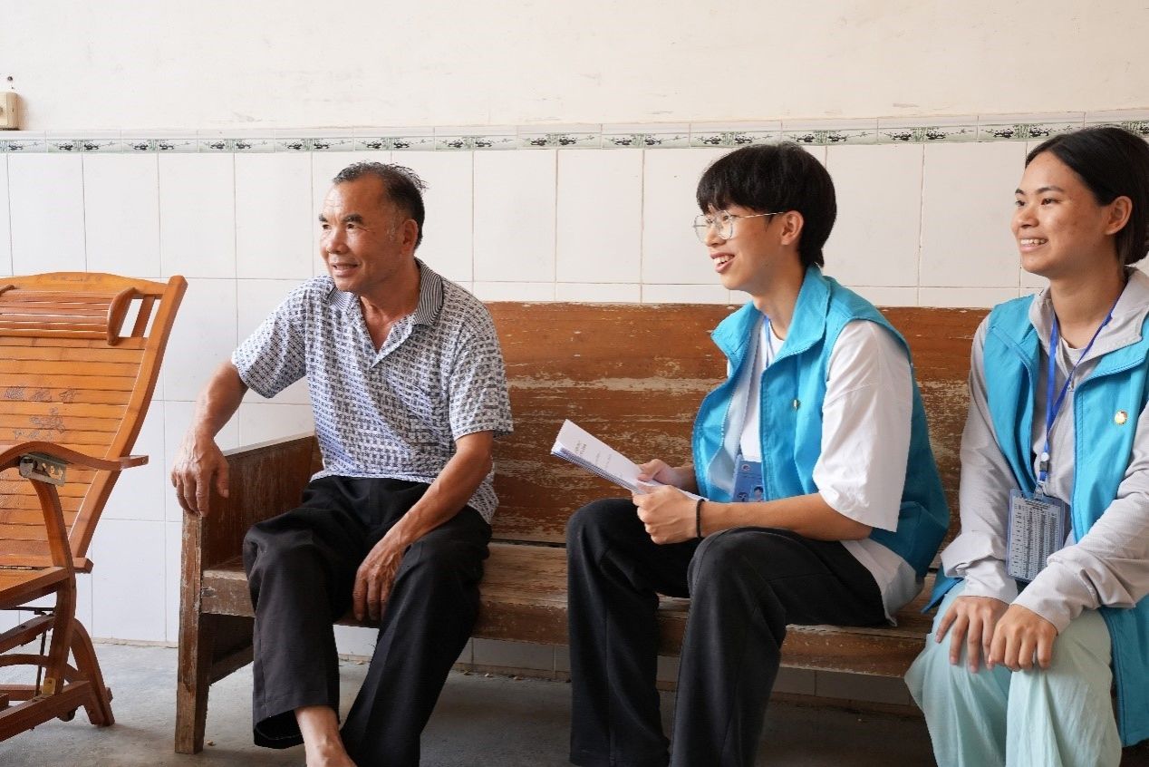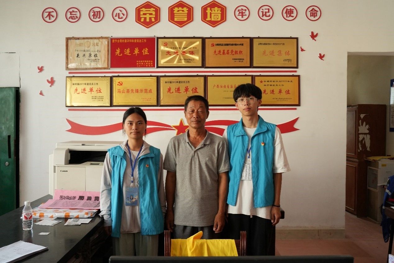 在当地村委的协助下,通过逐户走访的工作方式,进行了对乡村民族产业与信息化结合现状的深入调研。在此期间,调研团队累计走访53户、开展调研和宣传76次。此外,在村委会副主任甘显留的带领下参观了合理村集体经济产业园中的蛋鸭生产养殖基地,团队了解了基地内的盛源蛋品并进行了品尝。随后志愿者们在驻村第一书记李丹伦和驻村工作队员黄瑜的带领下采访了村内的三位老党员,分别是陈华胜、何桂禄、陈荣民,志愿者们在访谈的过程中学习他们的革命精神和崇高品德,深刻体会到了红色精神传承和发扬的重要性。
