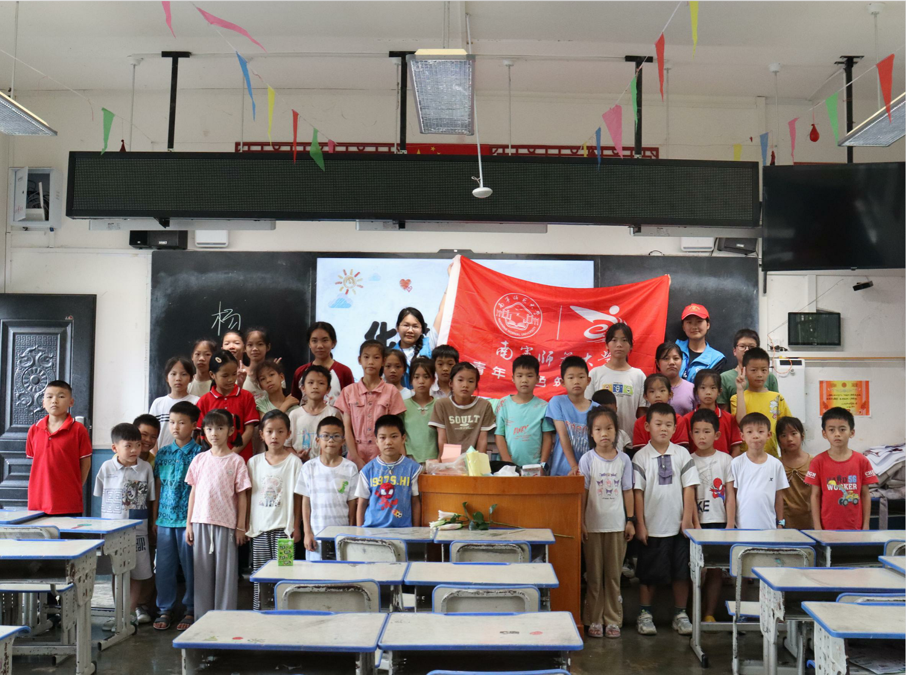 炎炎夏日,青春当燃。青年志愿者们在教学实践的田野上,与小朋友们并肩前行,以实践之名致青春,为乡村教育的沃土播撒希望的种子,为青春增添绚丽的色彩。