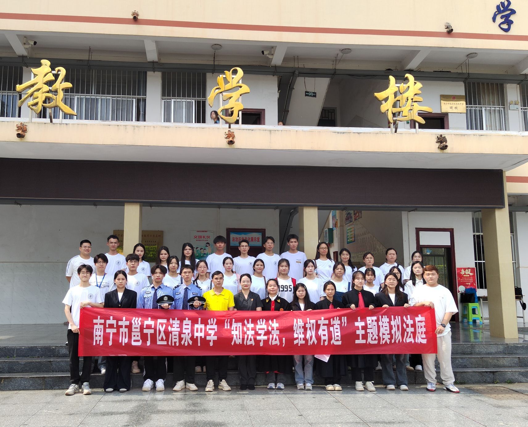 为了让青少年进一步了解未成年人犯罪的危害性和严重性,帮助青少年提高法律素养和法治意识,推动法治宣传教育,2024年5月14日下午,我校法律协会赴南宁市邕宁区清泉中学开展第九期清泉中学普法活动。此次活动由南宁师范大学法学与社会学院法律系专任教师兼律师秦晓辉老师、杨剑锋老师随队指导,活动还邀请到邕宁区人民法院粟少清法官到场指导。本次活动由我校法律协会会长刘英作为活动负责人,南宁师范大学法律协会成员以及南宁市邕宁区清泉中学全体学生共同参与了本次活动。