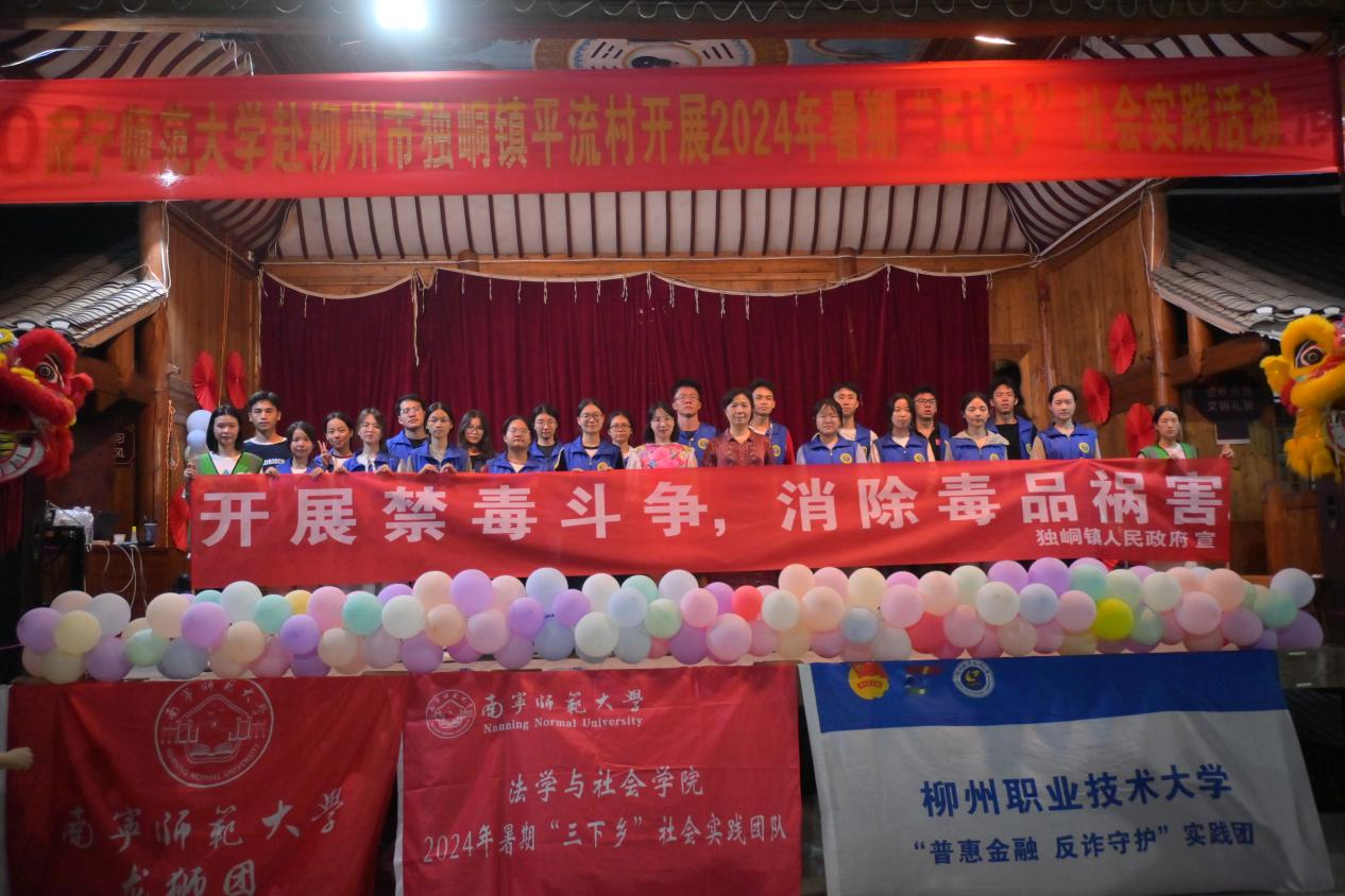 四是法治春风吹满地,乡村振兴有法依。此次活动也得到了三江县独峒镇人民政府的充分肯定,在镇政府微信公众号发布了题为“暑假‘三下乡’社会实践,共筑禁毒安全线”的推文,宣传和点赞了本次普法活动。在17日文艺汇演当晚,志愿者协助禁毒社工发放禁毒宣传单,并结合宣传单上的内容用当地方言向群众讲解毒品知识。此次“三下乡”普法宣传系列活动,不仅增强了村民的法律意识和法治观念,也为乡村振兴注入了法治力量。实践团成员们纷纷表示,将以此次活动为契机,持续响应国家号召,成为有理想、敢担当、能吃苦、肯奋斗的新时代青年,在推进法治宣传、建设法治社会的道路上不断前行。