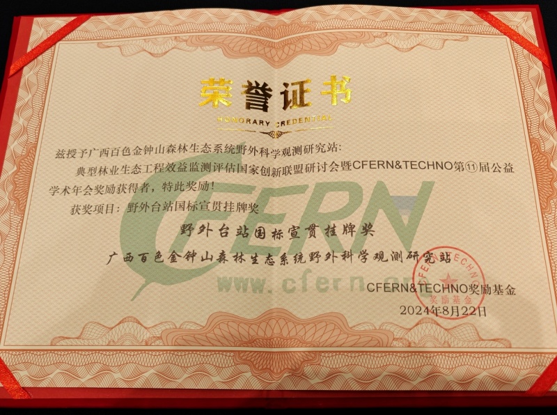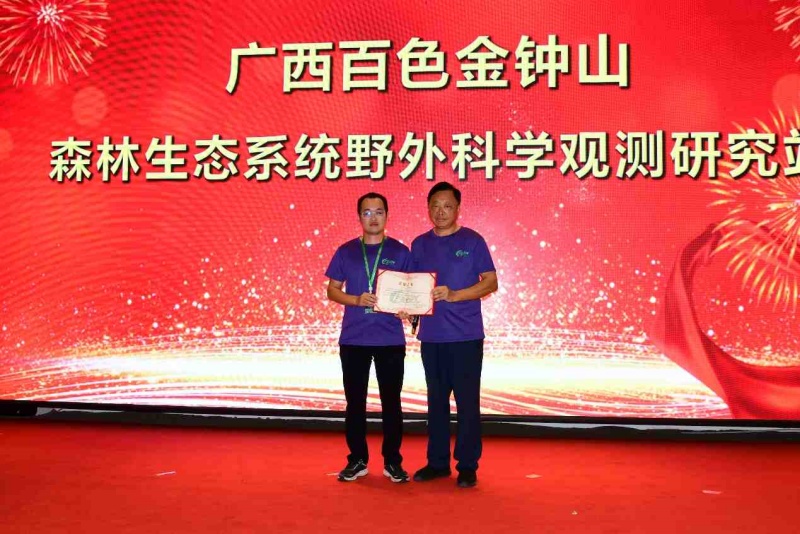 广西百色金钟山野外站代表上台领取国标宣贯挂牌奖