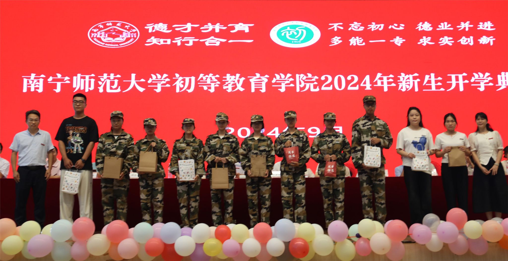 9月11日上午,初等教育学院领导班子、各系各教研室主任以及辅导员、新生班主任到五合校区体育馆开展2024级新生军训慰问活动。苏学权副书记主持此次活动。