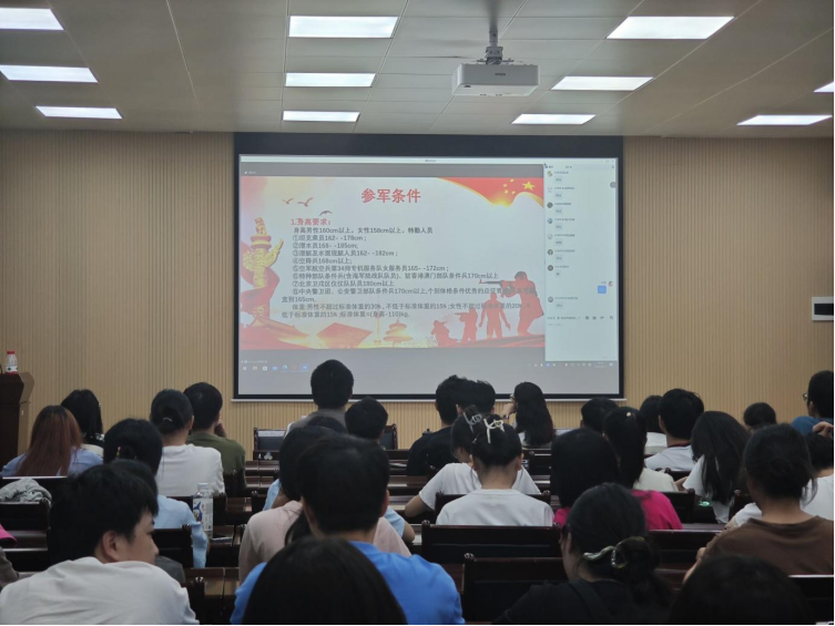 会上,林雪老师针对毕业生请假、毕业生就业推荐书、简历、双选会及招聘会等问题进行解答和建议。鼓励毕业生要自信、多尝试,积极参加招聘会。宋宏斌老师围绕入伍意义、入伍条件、基本流程、优待权益等四方面进行全面讲解,鼓励、呼吁毕业生们积极报名参军,投身绿色军营,将个人理想投入强军强国梦中。