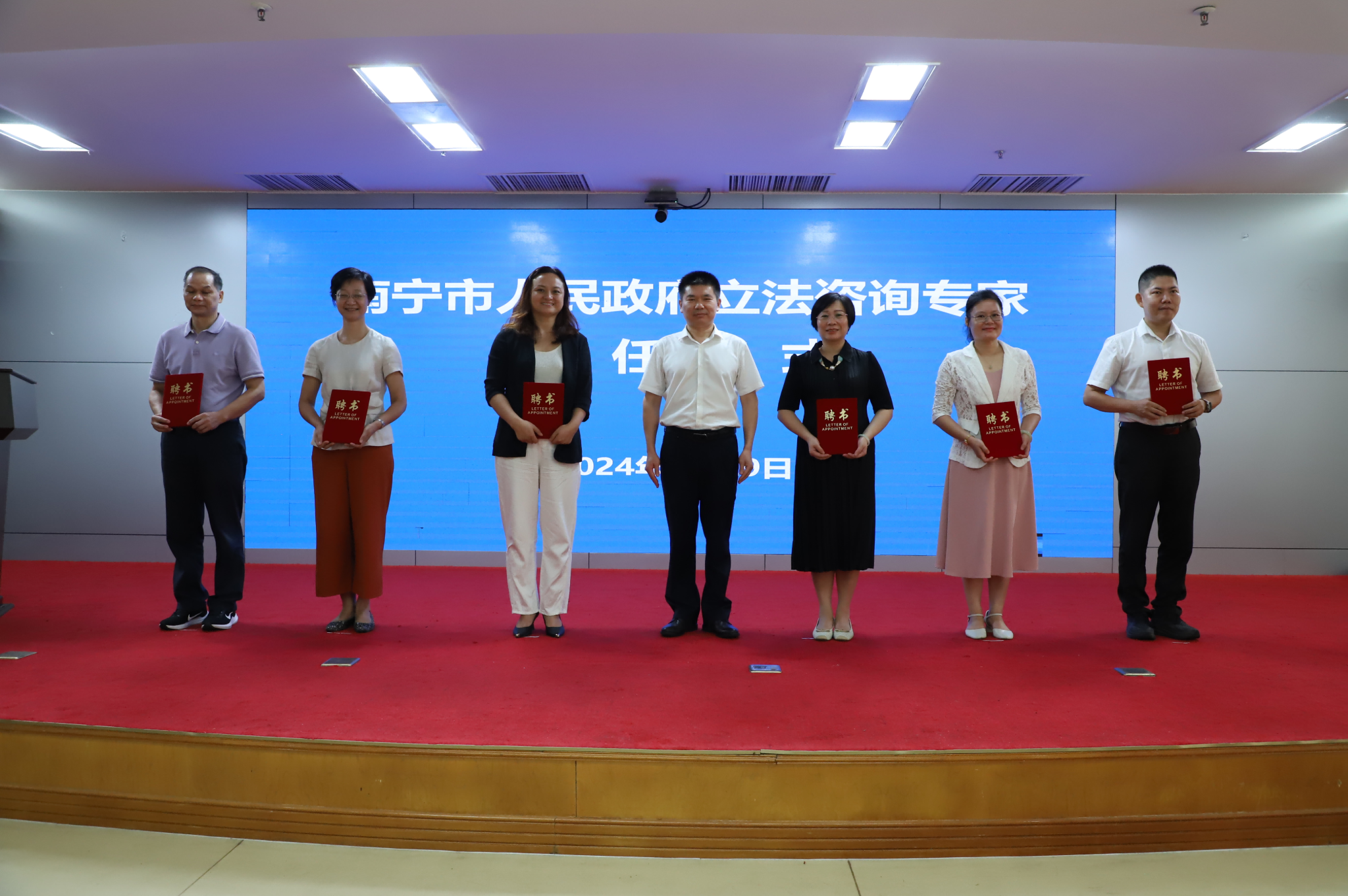 2024年8月29日,南宁市司法局举行南宁市人民政府立法(基层)联系点授牌和立法咨询专家聘任仪式暨立法专题培训。法学与社会学院遴选成为南宁市人民政府立法联系点,卢明威副院长作为立法联系点负责人、法律系主任陈文琼教授获聘为立法咨询专家出席会议。