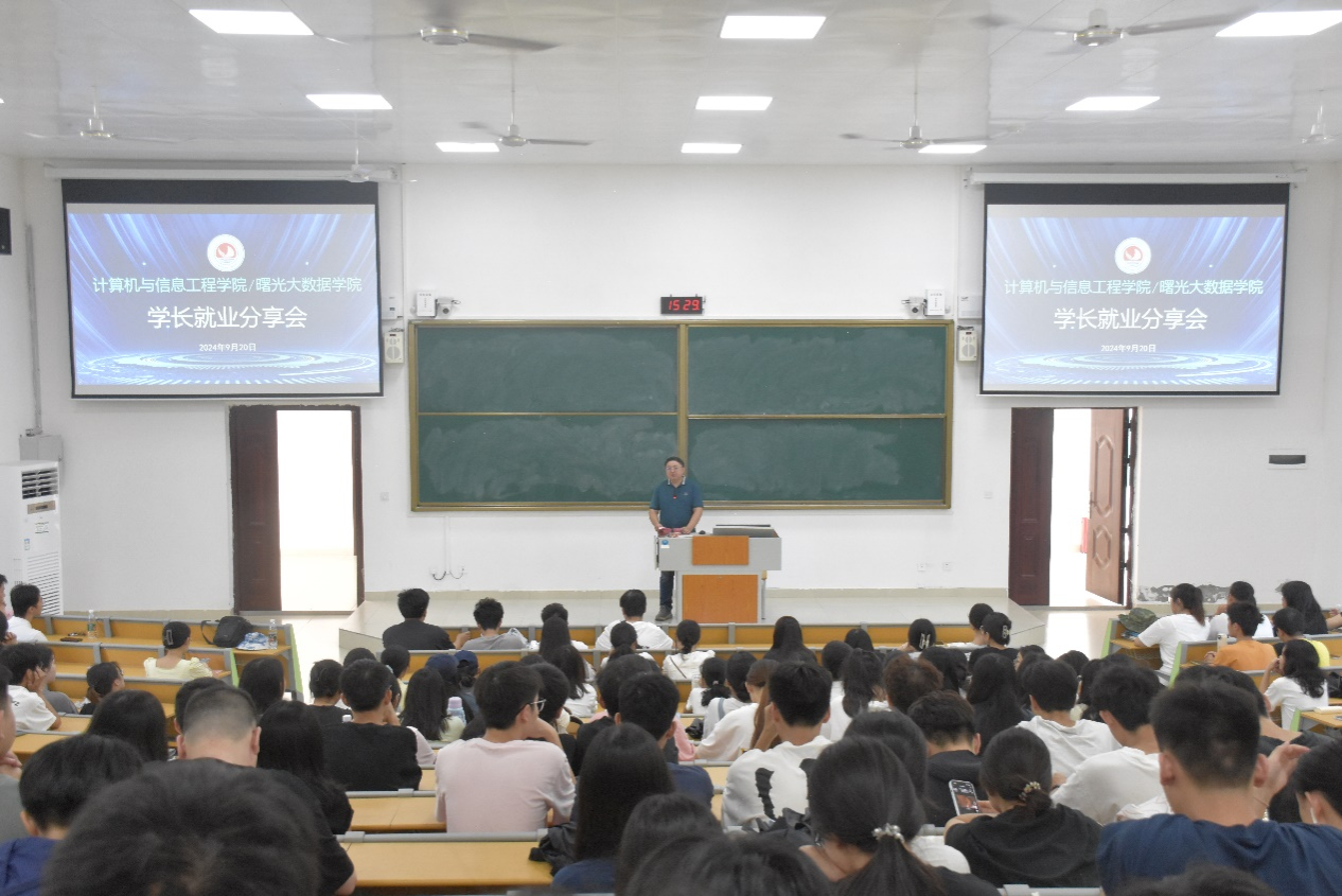 9月20日,计算机与信息工程学院/曙光大数据学院在实验楼1-B113举办学长就业分享会。计算机与信息工程学院2007届校友、广西殊诚众服信息技术有限公司创始人、执行董事李秋高应邀参加。分享会由李行老师主持,辅导员许艺静老师以及2022级专升本全体同学参加。