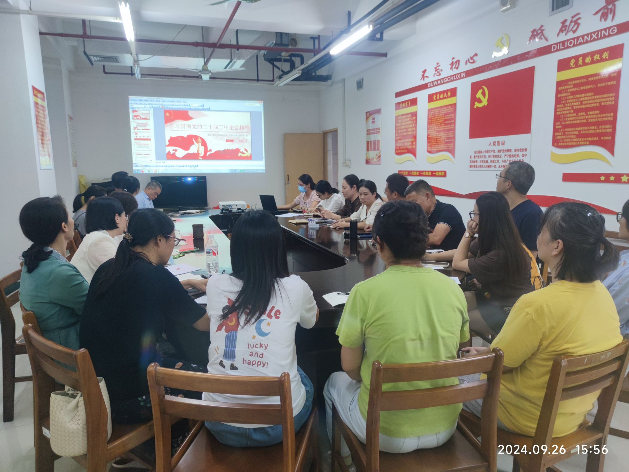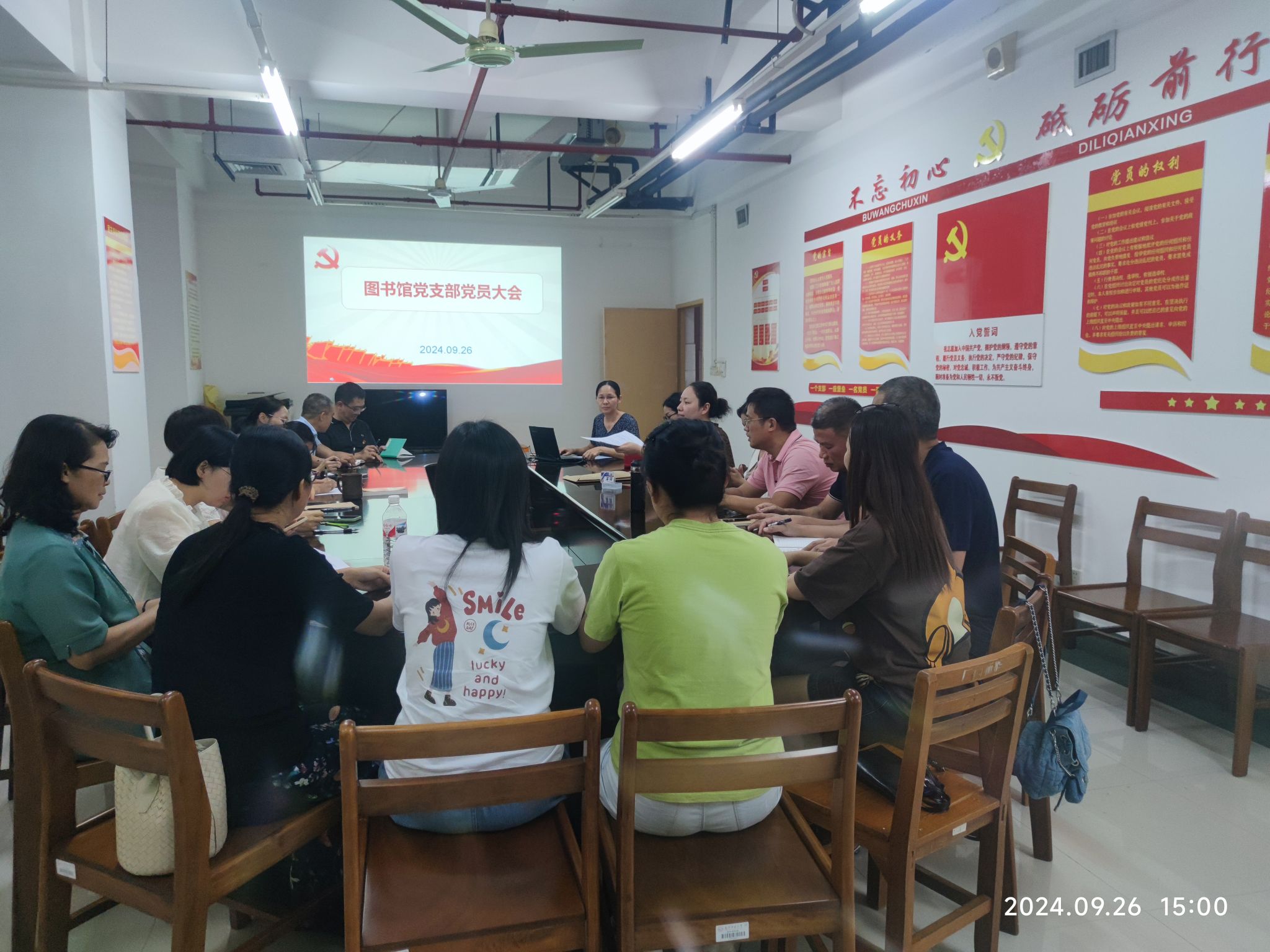 9月26日下午,图书馆党支部在明秀馆11楼党员活动室召开了全体党员大会,学习贯彻党的二十届三中全会精神。全体党员及发展对象参加了会议,会议由党支部书记叶佩珍主持。