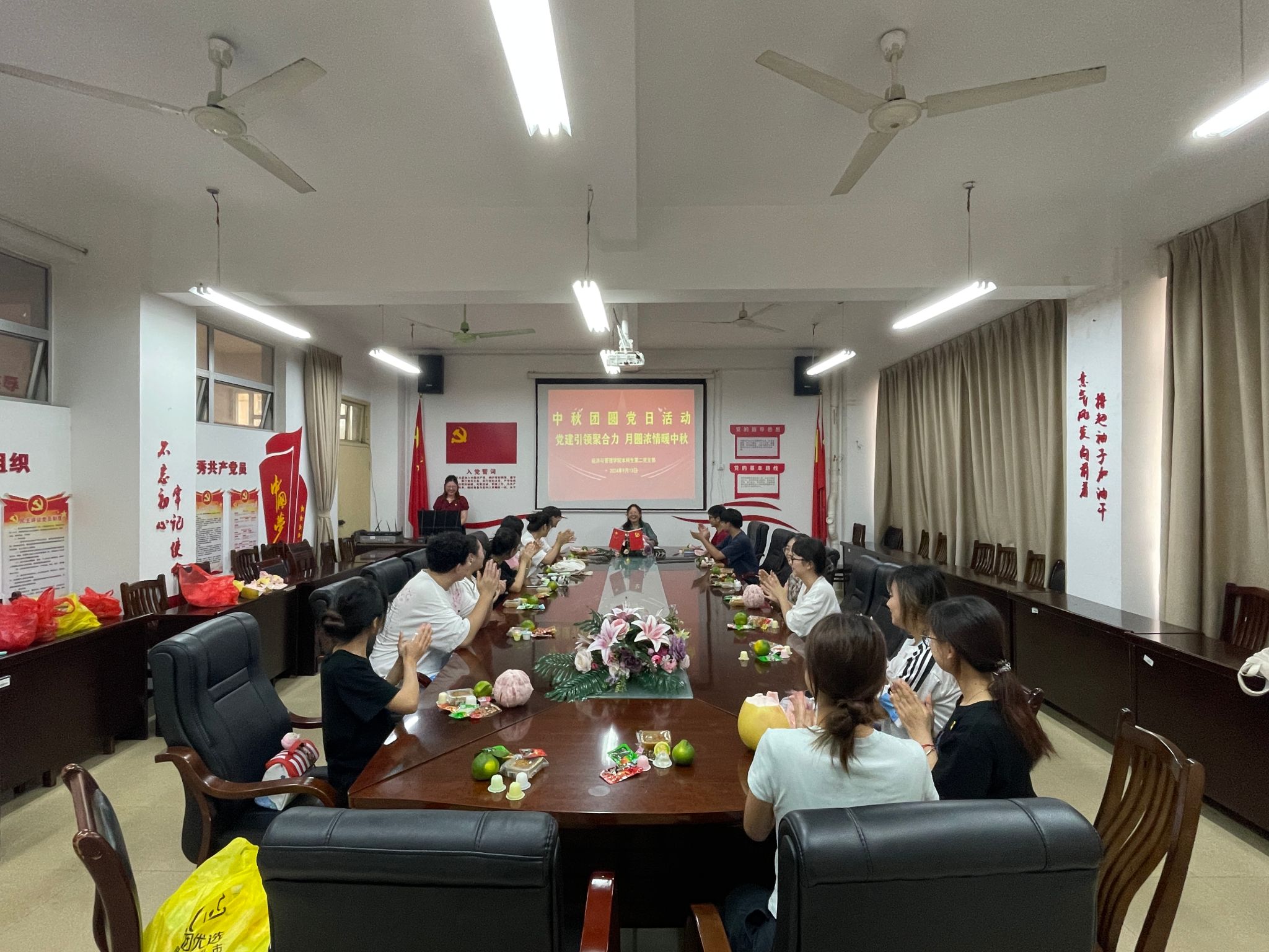 在中秋佳节来临之际,为进一步增强支部党员对中华优秀传统文化的认同感,增进感情交流,9月13日下午,经济与管理学院本科生第二党支部在明秀校区开展“党建引领聚合力 月圆浓情暖中秋”主题党日活动。支部全体在校党员参加活动,活动由陆柳雪同志主持。