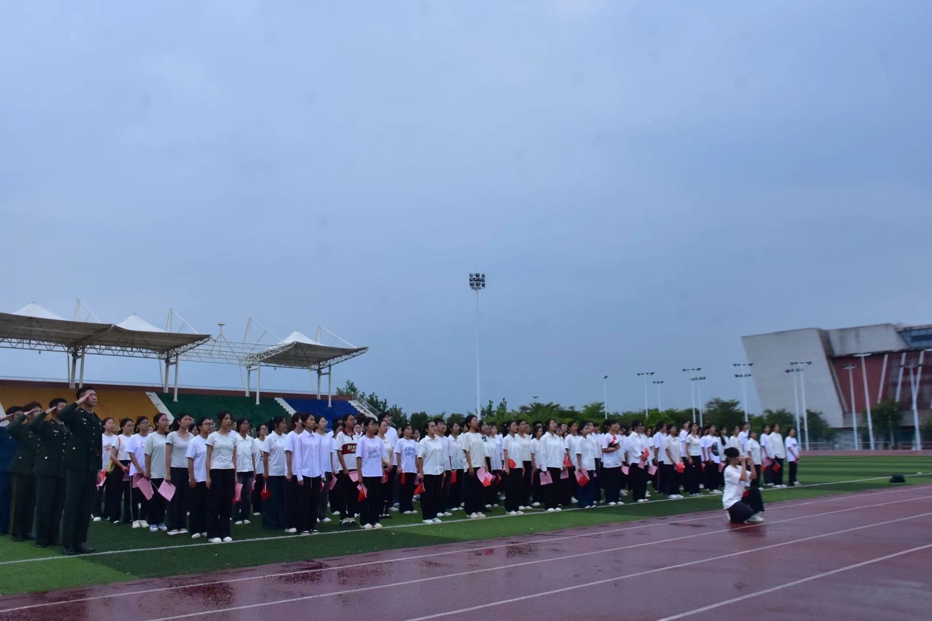 两名退役大学生代表在国旗下发表讲话,对国庆75周年的到来表达了深深的祝福,同时鼓励同学们要秉承“德才并育,知行合一”的校训,勤于钻研,勇于开拓,发挥青年力量为书写祖国新的篇章挺膺担当,勇往直前。退役大学生代表带领全体同学在国旗下洪亮地宣誓“请党放心,强国有我”,喊出“祖国万岁,繁荣昌盛,吾辈自强”的口号,彰显当代大学生报效祖国的坚定决心。