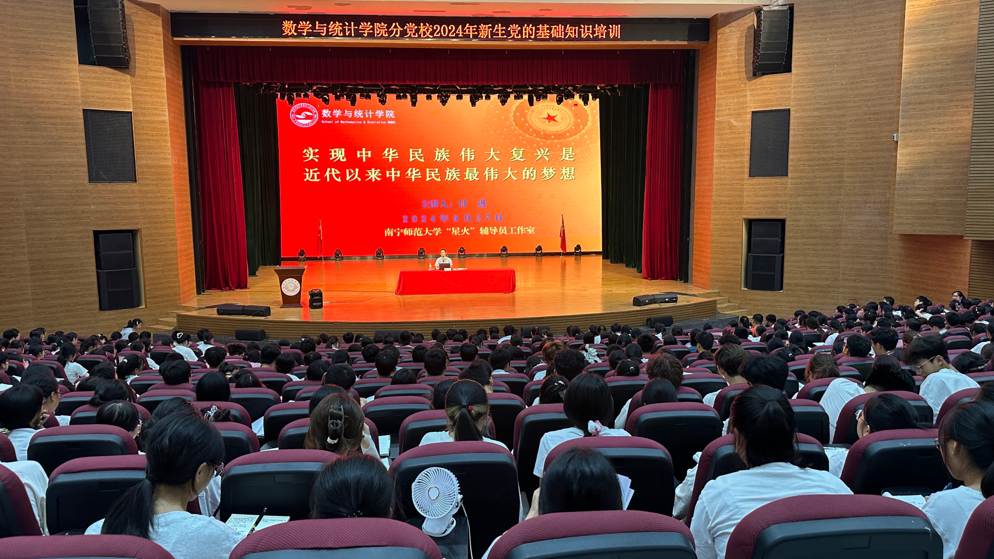 为深入学习贯彻党的二十届三中全会精神,9月27日晚,数学与统计学院分党校在武鸣校区千人演播厅开展2024级新生“党的基本知识”培训班第一讲,该院党委付进副书记、全体辅导员、本科生第三党支部、本科生第四党支部、全体新生参加此次活动。