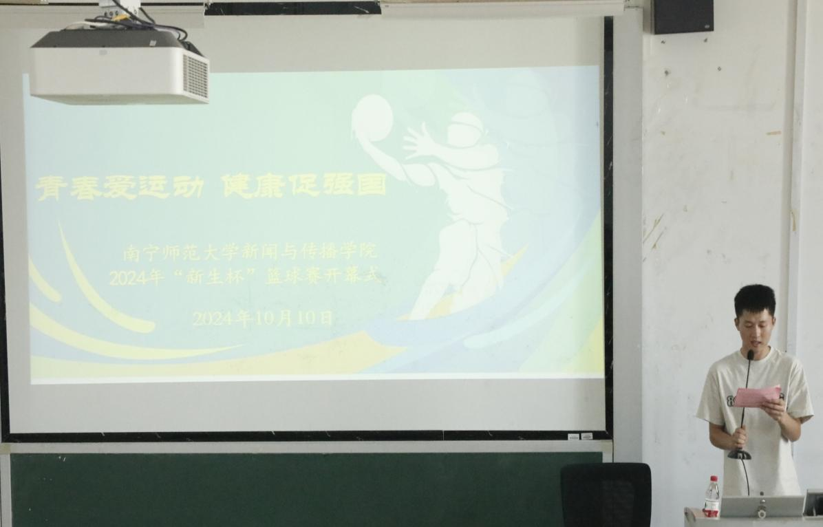 为提高新生们的竞技热情和体育锻炼意识,培养其团队精神,10月10日,新闻与传播学院于文综415举行“新生杯”篮球赛开幕式。学院党委副书记黄敏、团委书记李樱花出席本次会议,各班体委及参赛选手参加会议。