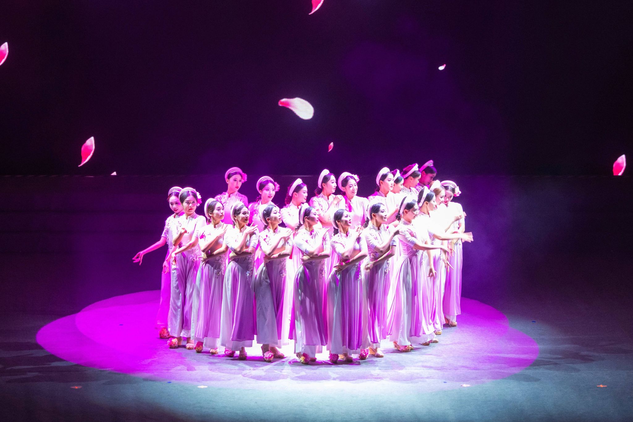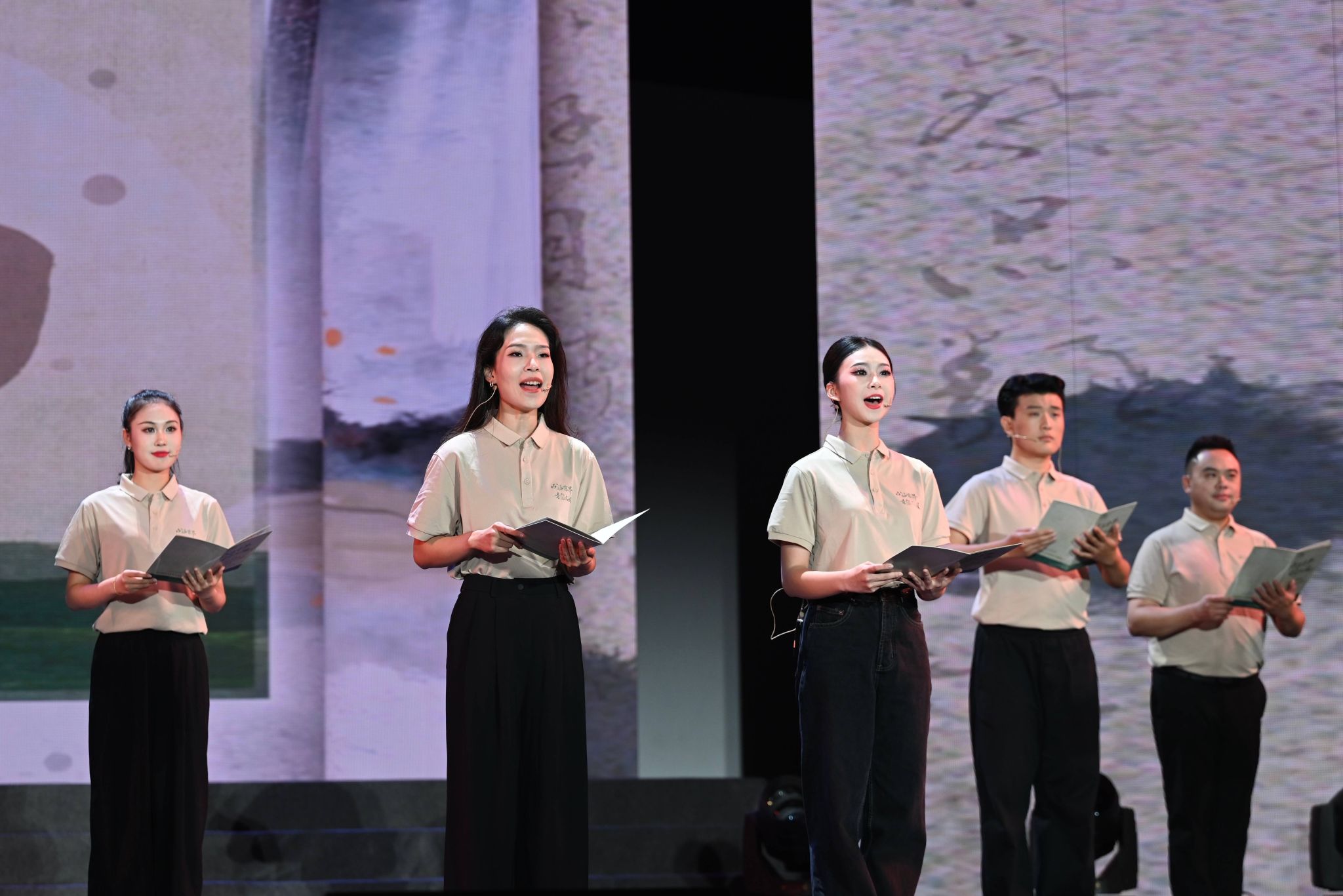 音乐与舞蹈学院王亚楠老师、文祎洋同学与组团高校师生同台朗诵的致敬词《山海之约》,招霞老师与六所高校教师共同演唱的《我们的故事》,王韦、刘媛、王亚楠老师共同编创,21名同学演出的《对花屐》,舒春秀老师与六所高校师生共同演绎的歌伴舞《我和我的祖国》在大思政课舞台上依次演出,展现出南师师生自强不息、追求卓越的良好精神风貌和在推进中国式现代化建设中挺膺担当的奋斗精神。
