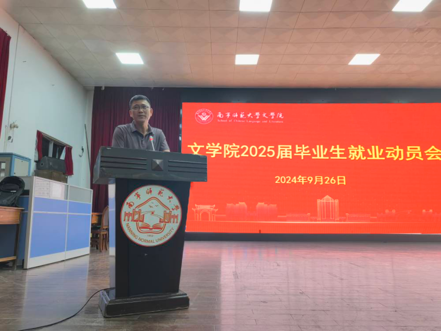 为做好学院2025届毕业生就业指导服务工作,帮助同学们认识就业形势,树立正确就业观念,提高就业竞争力,9月26日晚,文学院在明秀校区会堂召开了2025届毕业生就业动员会。学院领导班子成员、毕业班年级辅导员、2025届毕业生参加了动员会。