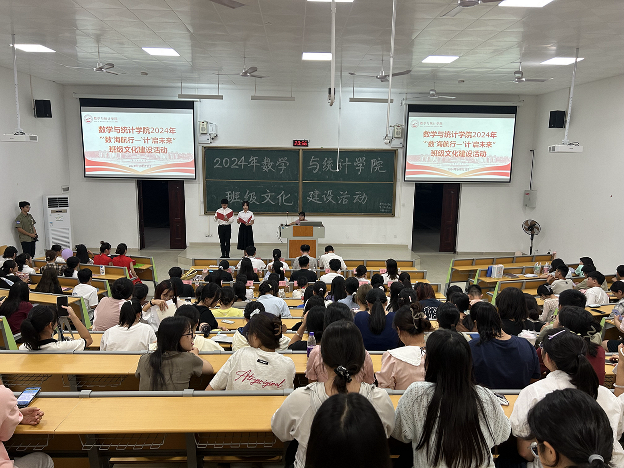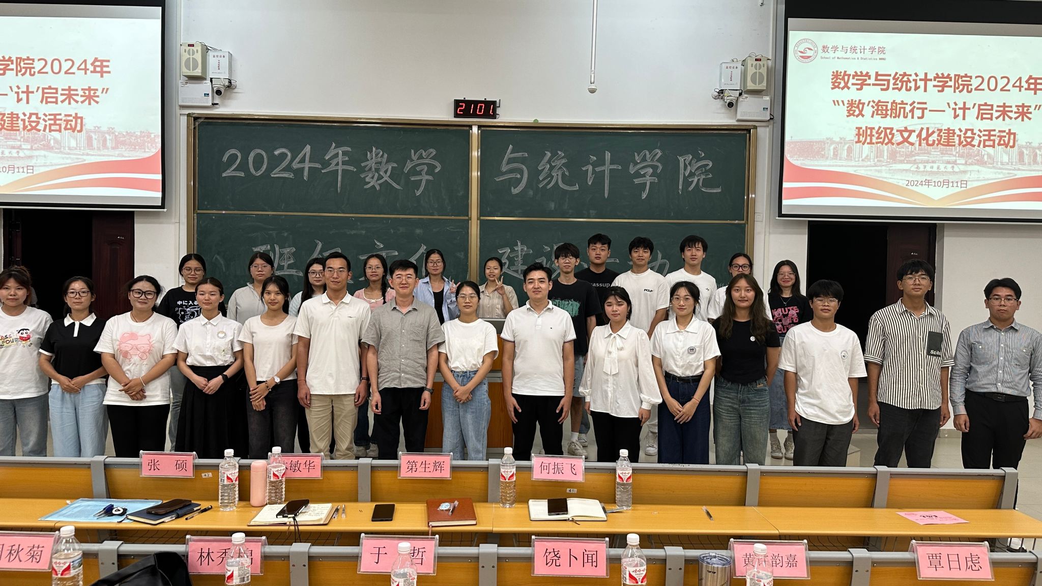 为增强班级凝聚力,促进班级文化建设,10月11日晚,数学与统计学院在实验2-A105教室举办“‘数’海航行——‘计’启未来”班级文化建设活动。学院相关辅导员,学院团委学生会常委团、2024级助理班主任及新生班级代表参加此次活动。