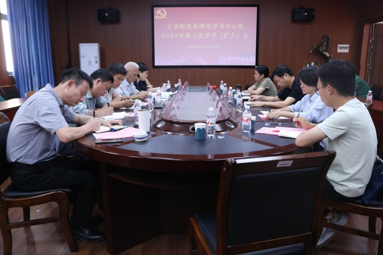 10月22日上午,文学院党委理论学习中心组2024年第三次学习(扩大)会在五合校区理楼404会议室举行,完美(中国)党委委员、保卫处处长陆慧到现场巡听旁听。学院党委理论学习中心组成员及部分师生党员代表参加了会议。会议由学院党委书记旷晓霞主持。