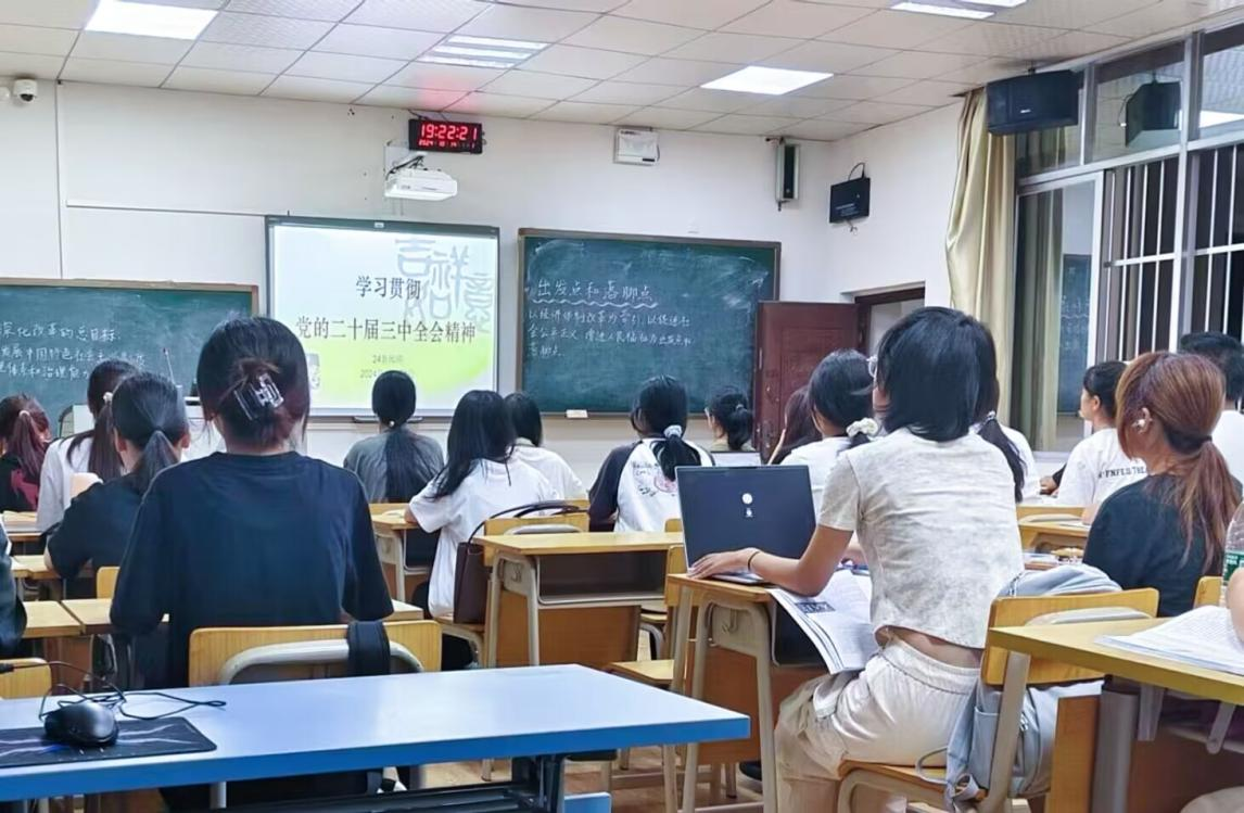 在活动过程中,各班团支书组织同学们对《中共中央关于进一步全面深化改革、推进中国式现代化的决定》这一纲领性文件进行了全面且系统的学习,同时注重将理论学习和实践相融合,强化新发展理念,深入领悟全会精神内涵。