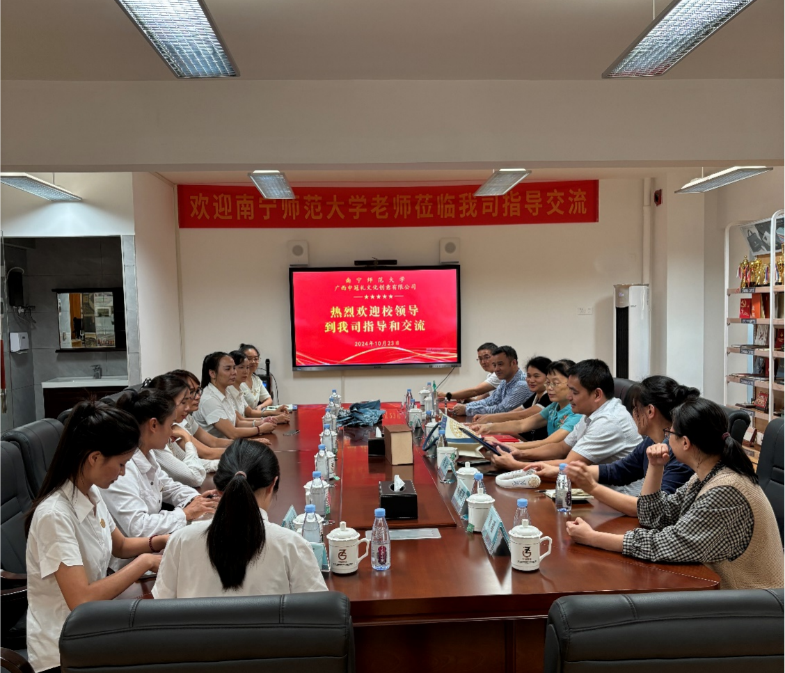 走访的最后一站是广西中冠礼文化创意有限公司。经济与管理学院文化产业管理专业的黄妹成和刘萍萍两位同学在该公司实习,并在实习期间获得了由广西壮族自治区文化和旅游厅举办的2024年“广西有礼”特色旅游商品创意设计大赛(企业组)铜奖的好成绩。在双方举办的座谈会上,何玲玲副院长表达了诚挚的感谢,并与该公司总经理李来勇探讨了邀请行业专家入校授课及引入设计工作室等深化校企合作的方式。