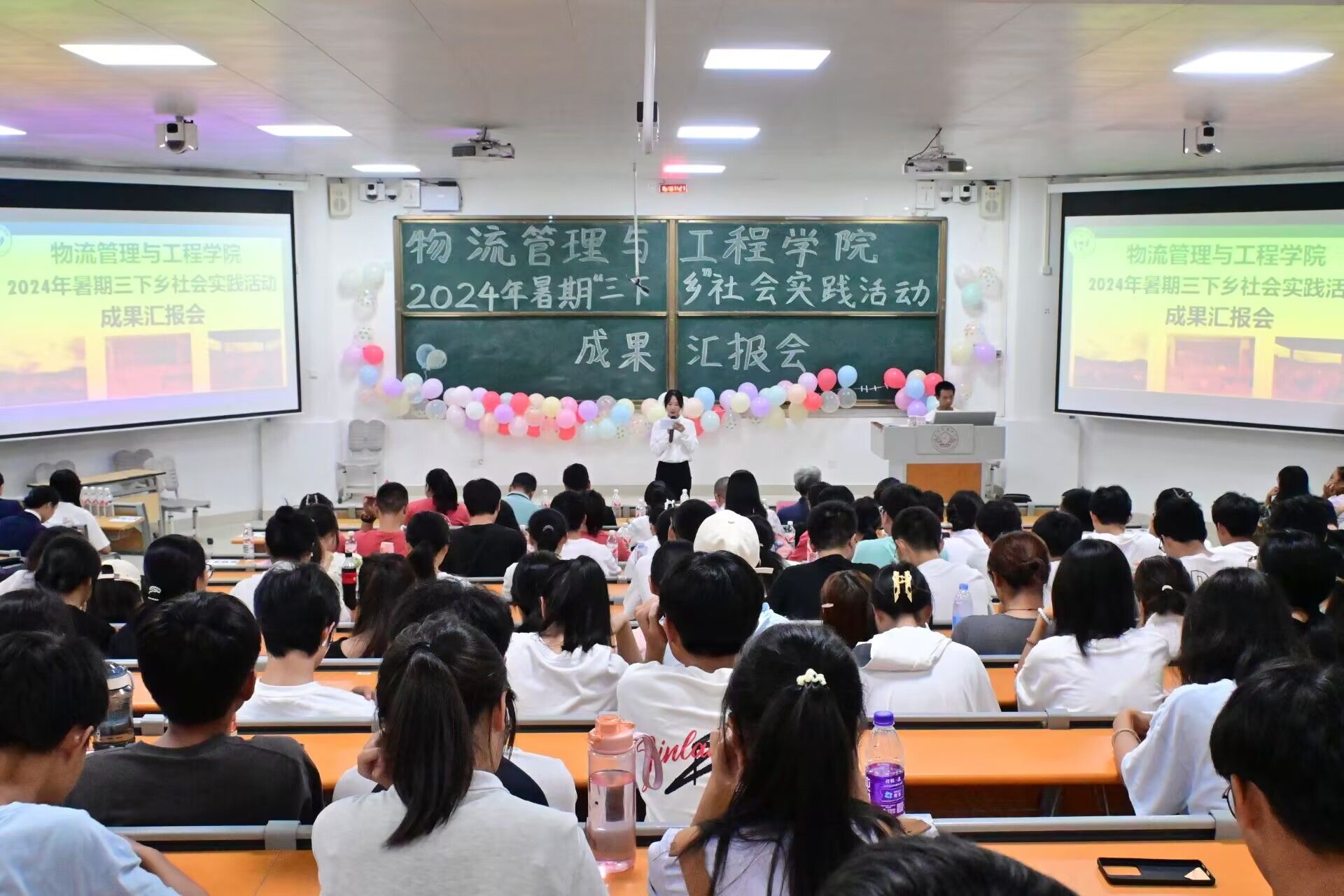 10月22日下午,物流管理与工程学院在武鸣校区武2-109举行2024年大学生暑期“三下乡”社会实践活动成果汇报会。学院党委书记陈兵、副书记黄宇、物流工程系主任于晓默老师、李冠军老师、徐志刚老师、林飞燕老师、团委书记黄海嫚以及“三下乡”队员、学院各年级学生代表参加了会议,会议由红蜻蜓艺术团主持组刘静雯主持。