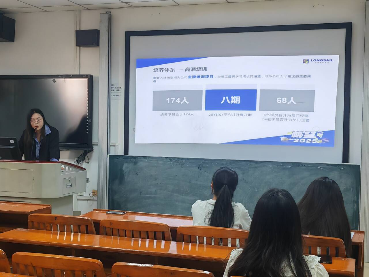10月24日下午,深圳市长帆国际物流股份有限公司(以下简称“长帆国际物流”)在我校明秀校区文星楼306教室举办2025届毕业生专场招聘宣讲会,我校人力资源、法学、市场营销等相关专业毕业生参会。