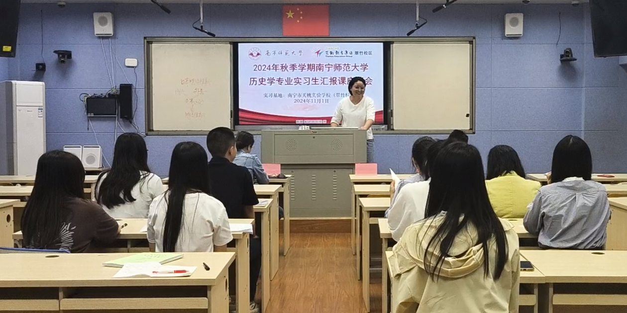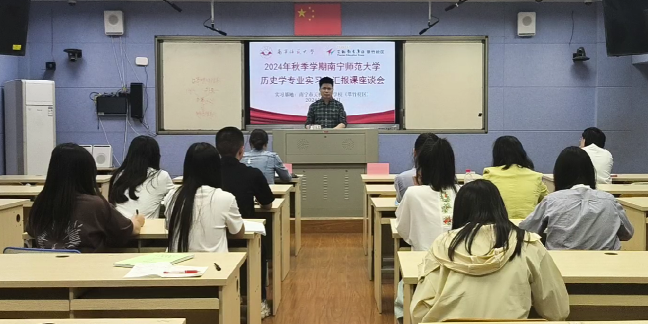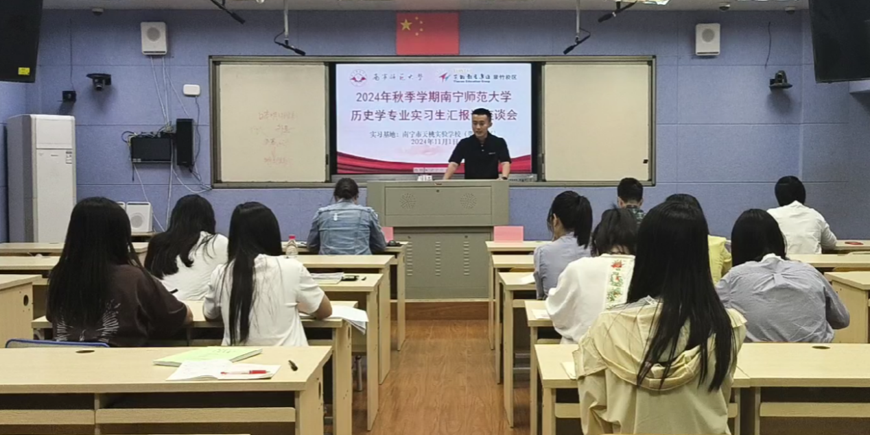 2024年11月1日下午,法学与社会学院历史学专业实习生汇报课暨实习工作交流会在南宁市天桃实验完美(中国)翠竹校区2栋3楼录播教室顺利举办。历史系主任刘方富,天桃实验完美(中国)教务处主任陈媛媛、历史学科实习生教学指导老师蒋丽芳、刘美婷、莫叶玲、邹小丽、潘沐云等参与此次汇报课活动。