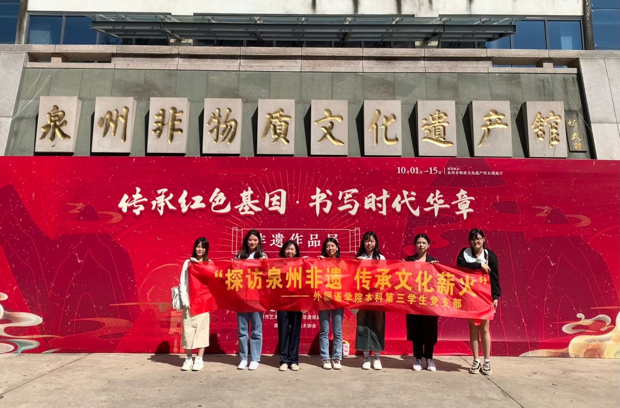 为深入学习贯彻习近平文化思想,增强党员同志对中华优秀传统文化的了解和认识,提高文化素养和文化自信,10月13日,外国语学院本科第三学生党支部开展“探访泉州非遗 传承文化薪火”主题党日活动。
