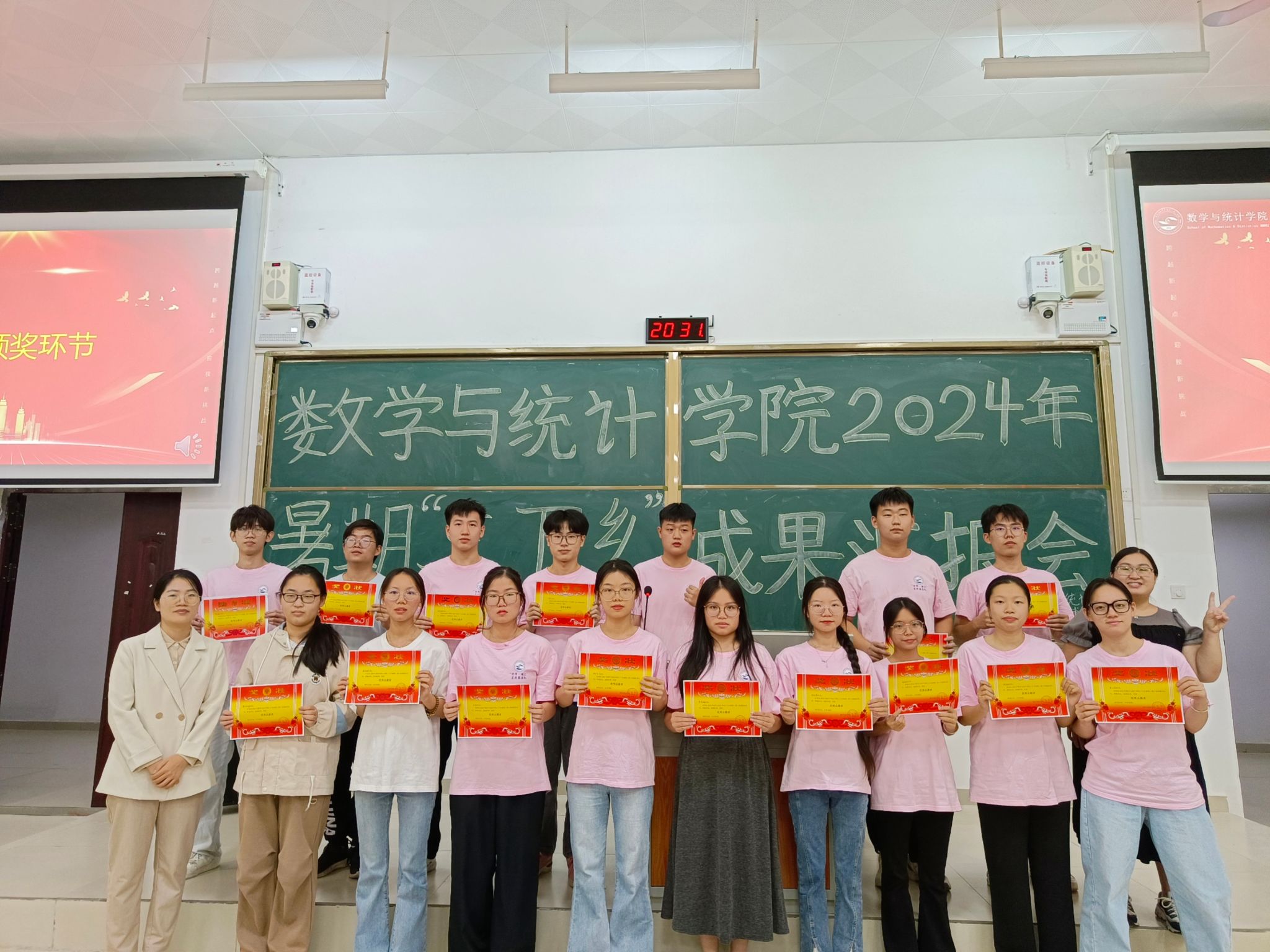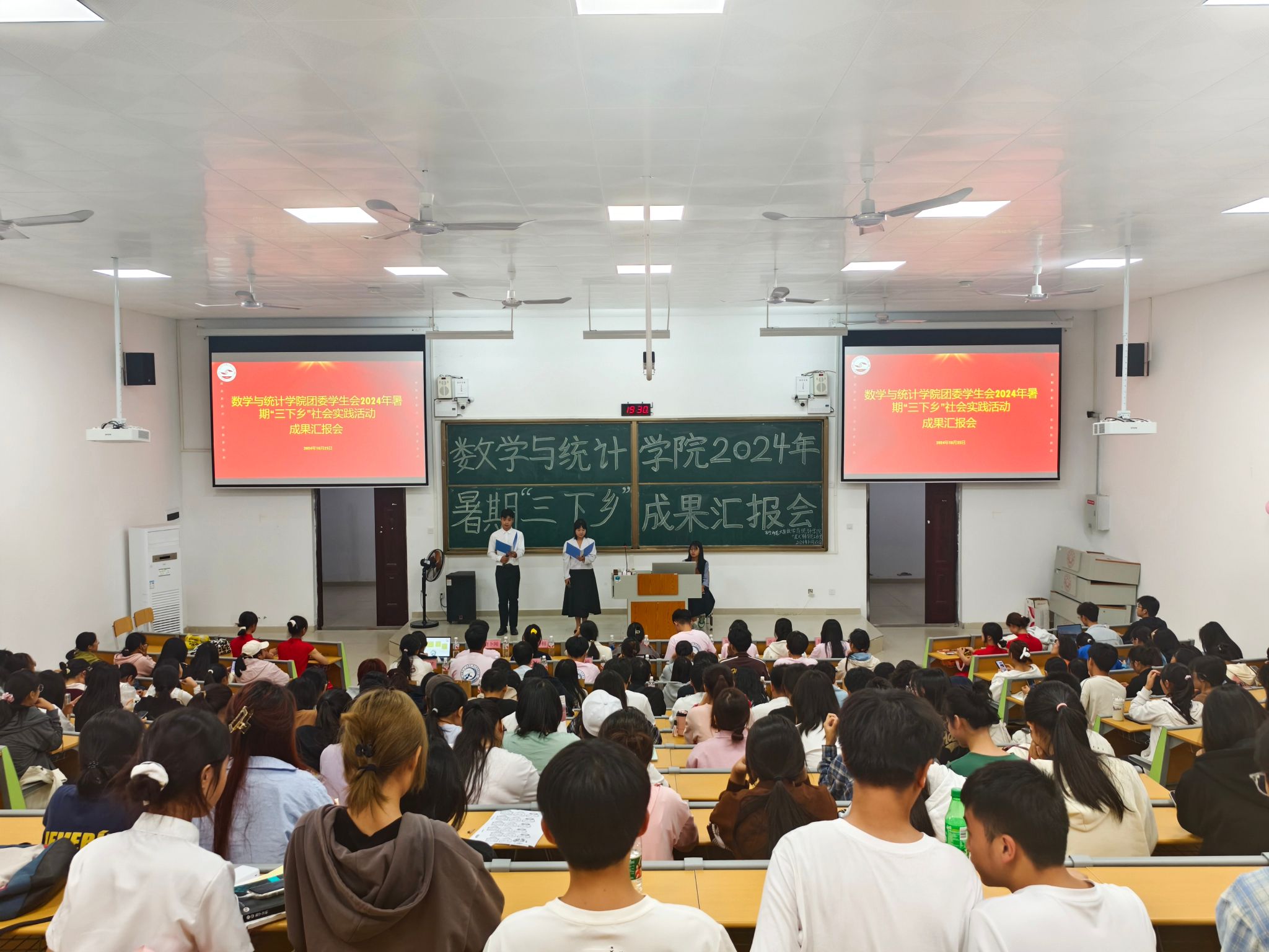 为深入总结学院暑期“三下乡”社会实践工作经验,展示实践活动风采,10月25日晚,数学与统计学院召开2024年暑期“三下乡”社会实践活动成果汇报会。学院相关辅导员,团委学生会常委团、各二级学院分团委学生会代表以及2023级、2024级学生代表参加本次汇报会。