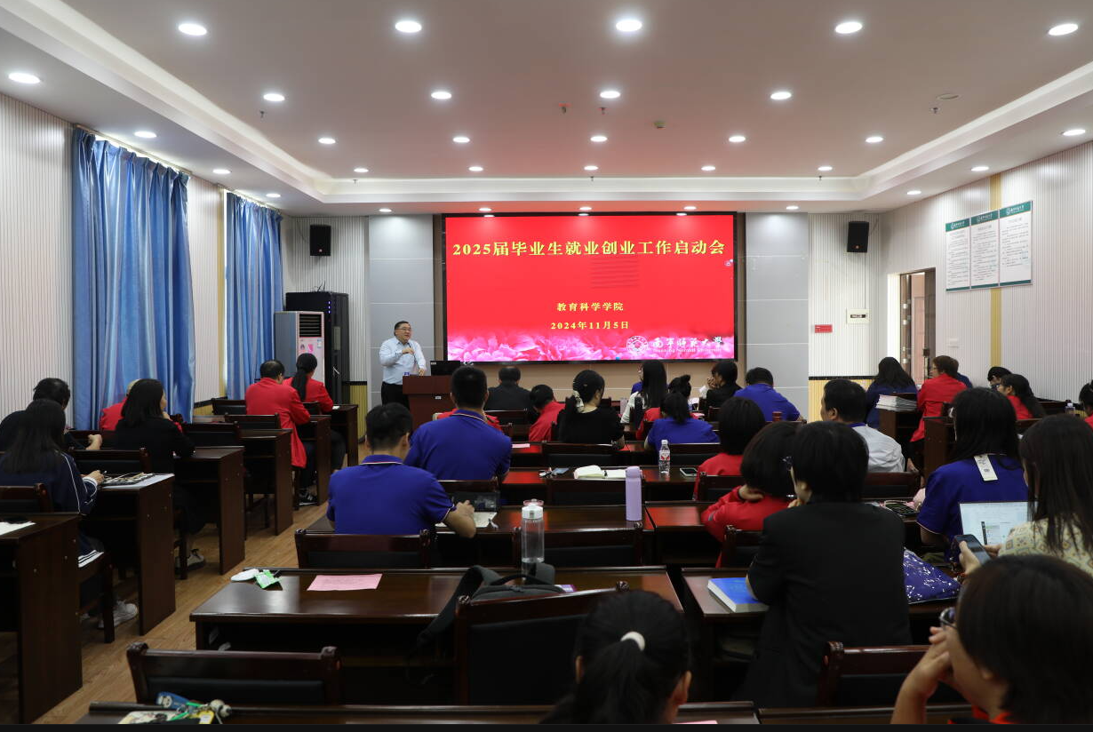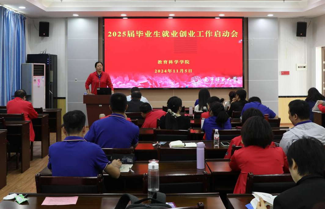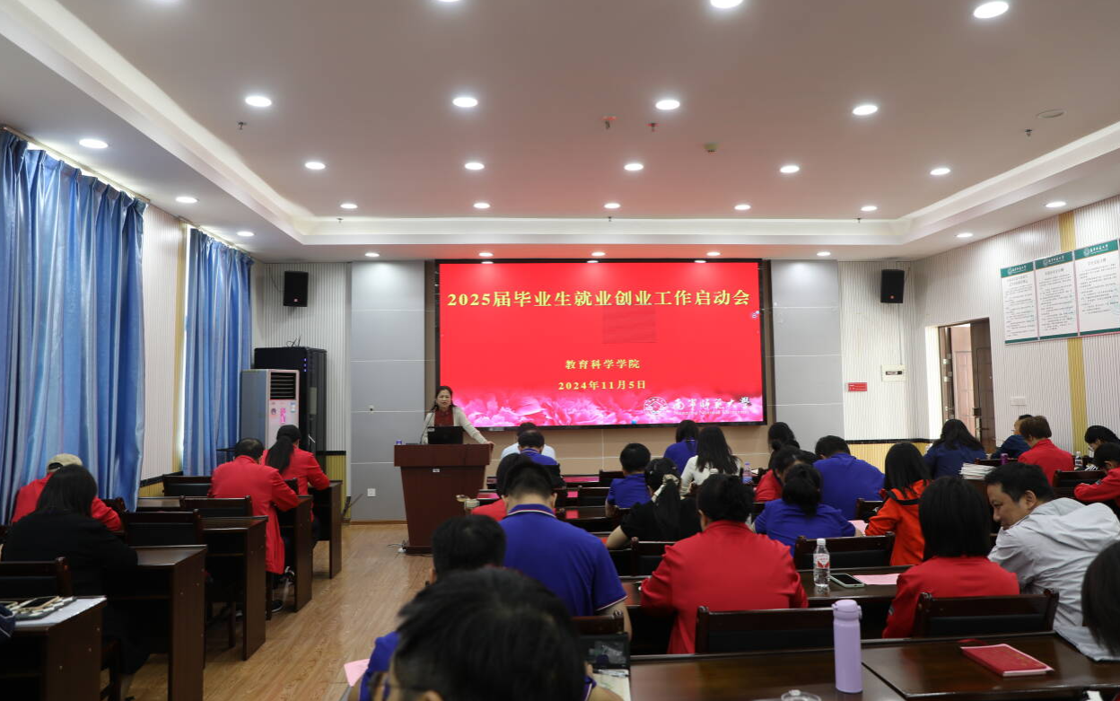 为做好2025届毕业生就业创业工作,教育科学学院于11月5日在五合校区理楼1003室召开了2025届毕业生就业创业工作启动会。会议由学院党委副书记谢珊主持,全体教职工参加。