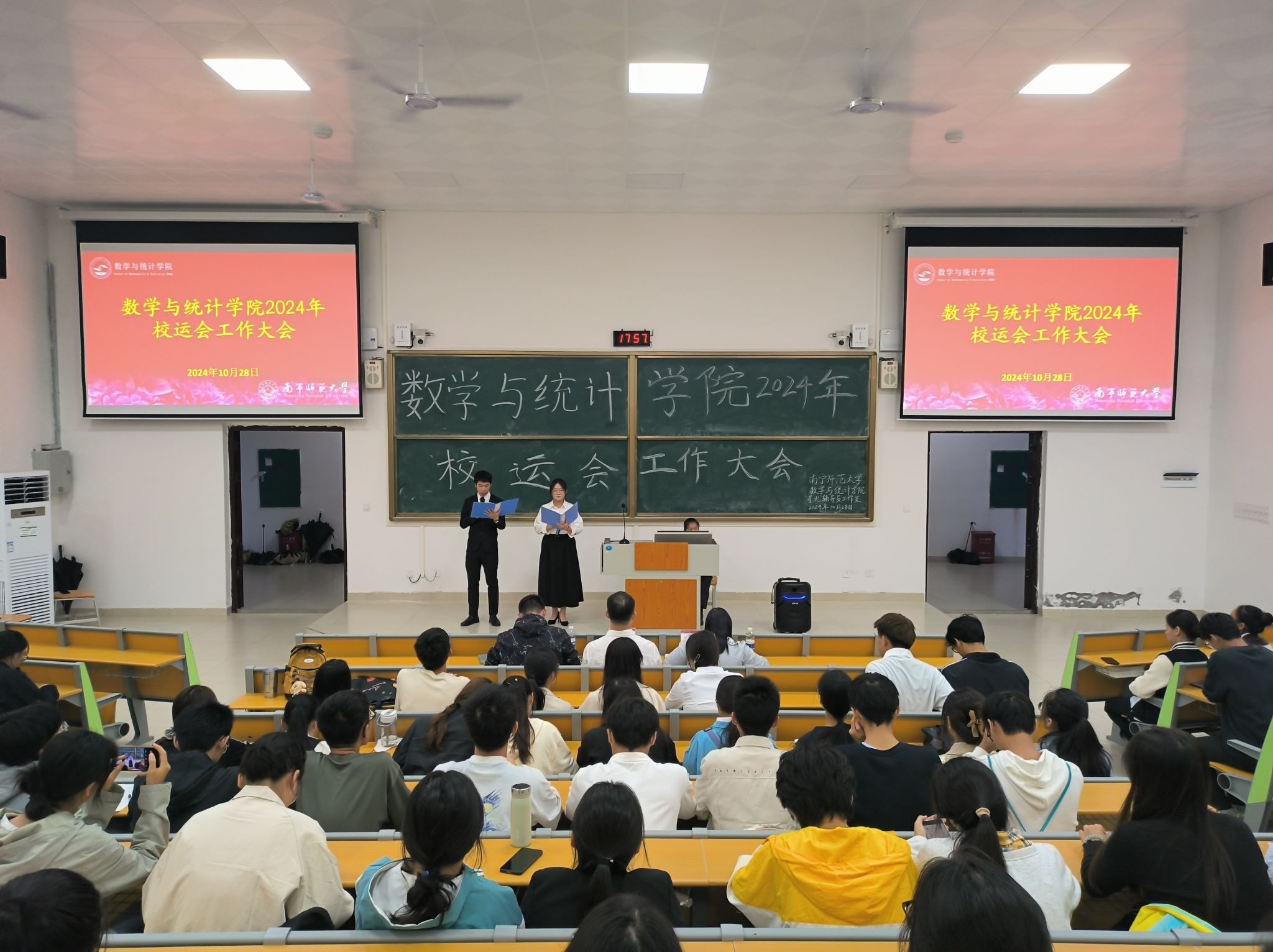 10月28日,数学与统计学院在实验1-B113教室召开2024年校运会工作大会。学院党委副书记付进及相关辅导员、全体运动员以及各班体育委员参加了本次会议。