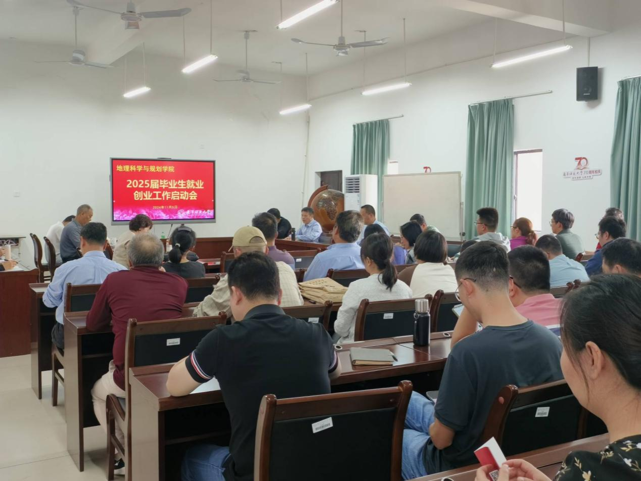 为贯彻落实《南宁师范大学2025届毕业生高质量充分就业工作方案》,11月5日,地理科学与规划学院在地源楼C401会议室召开2025届毕业生就业创业工作启动会。学院党政领导班子和全体教职工参加会议。