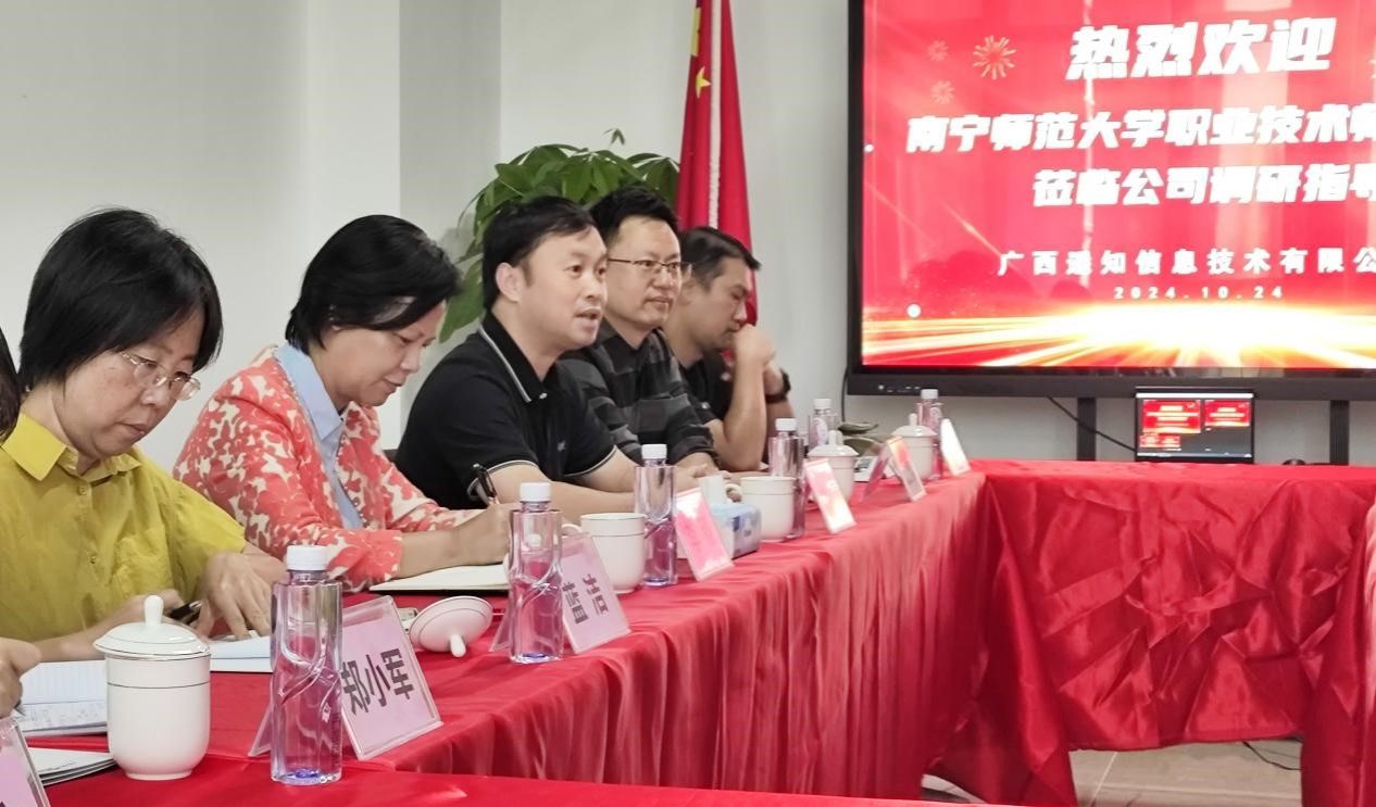 10月24日下午,职业技术师范学院党委书记李穗、院长陈良、副院长蓝洁等一行人前往广西遥知信息技术有限公司与广西塔易信息技术有限公司进行调研交流。此行旨在加强院企间的联系,深化院企合作,促进教育链、人才链与产业链的有机衔接。