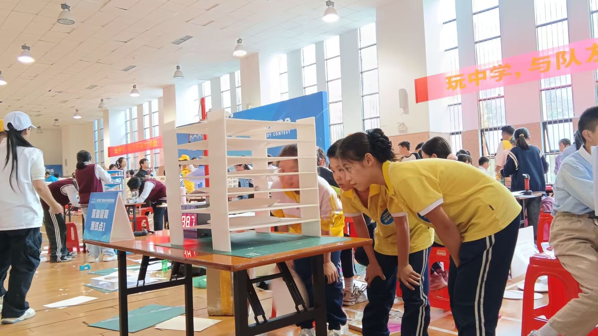 本次活动由自治区教育厅主办,广西师范大学科学教育研究所和广西科技馆承办,广西青少年科技教育协会协办,设有水火箭比高、抛石机攻城等八个竞赛项目。11月23-24日为期两天的志愿服务过程中,初等教育学院学子根据要求,结合实际在不同岗位分工合作,助推比赛顺利进行。他们身着统一服装,或热情引导参赛选手入场,或协助裁判推进比赛流程,或耐心解答观众疑问,积极向上的精神面貌和细心周到的工作作风给在场所有人留下深刻印象。