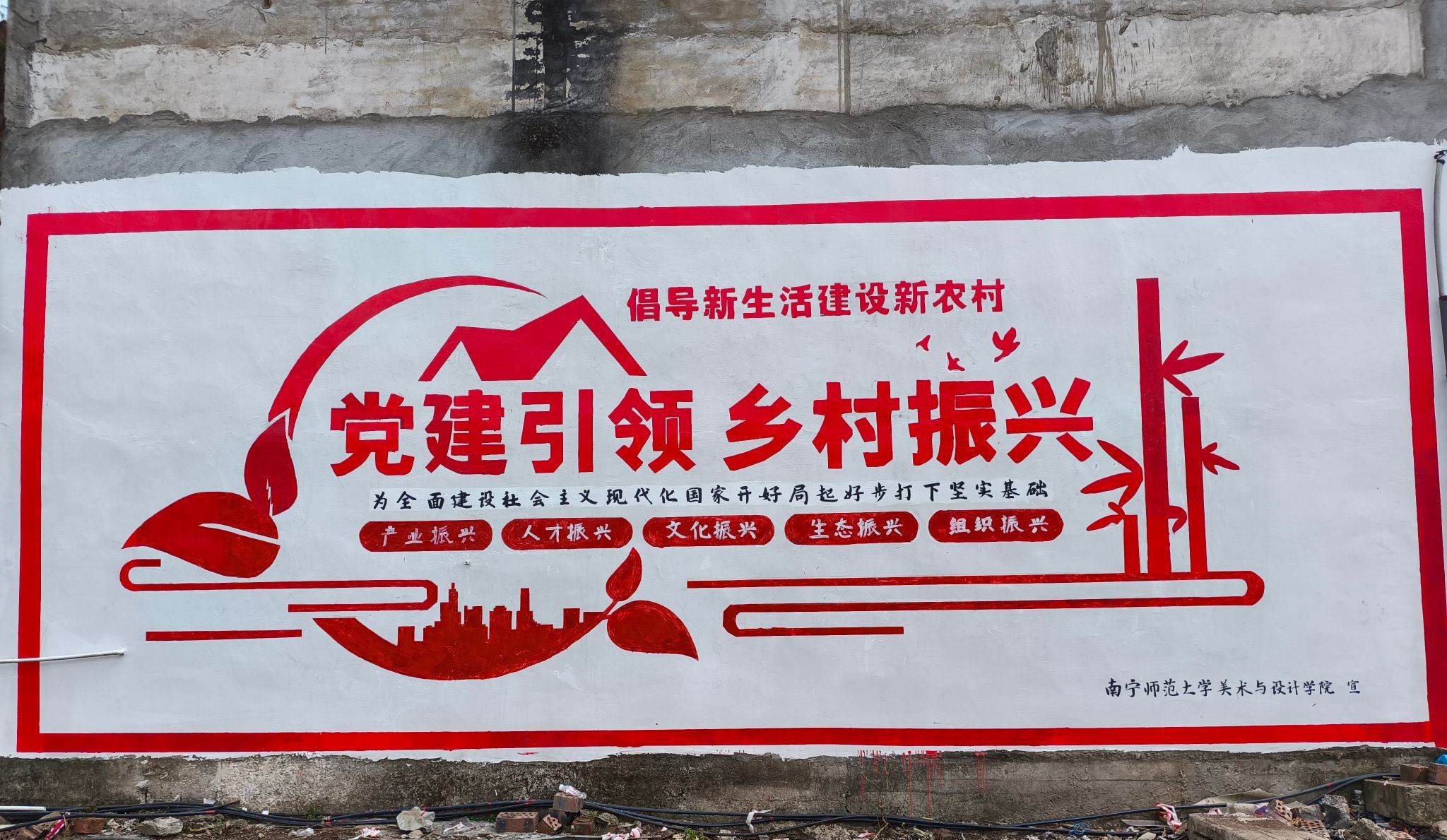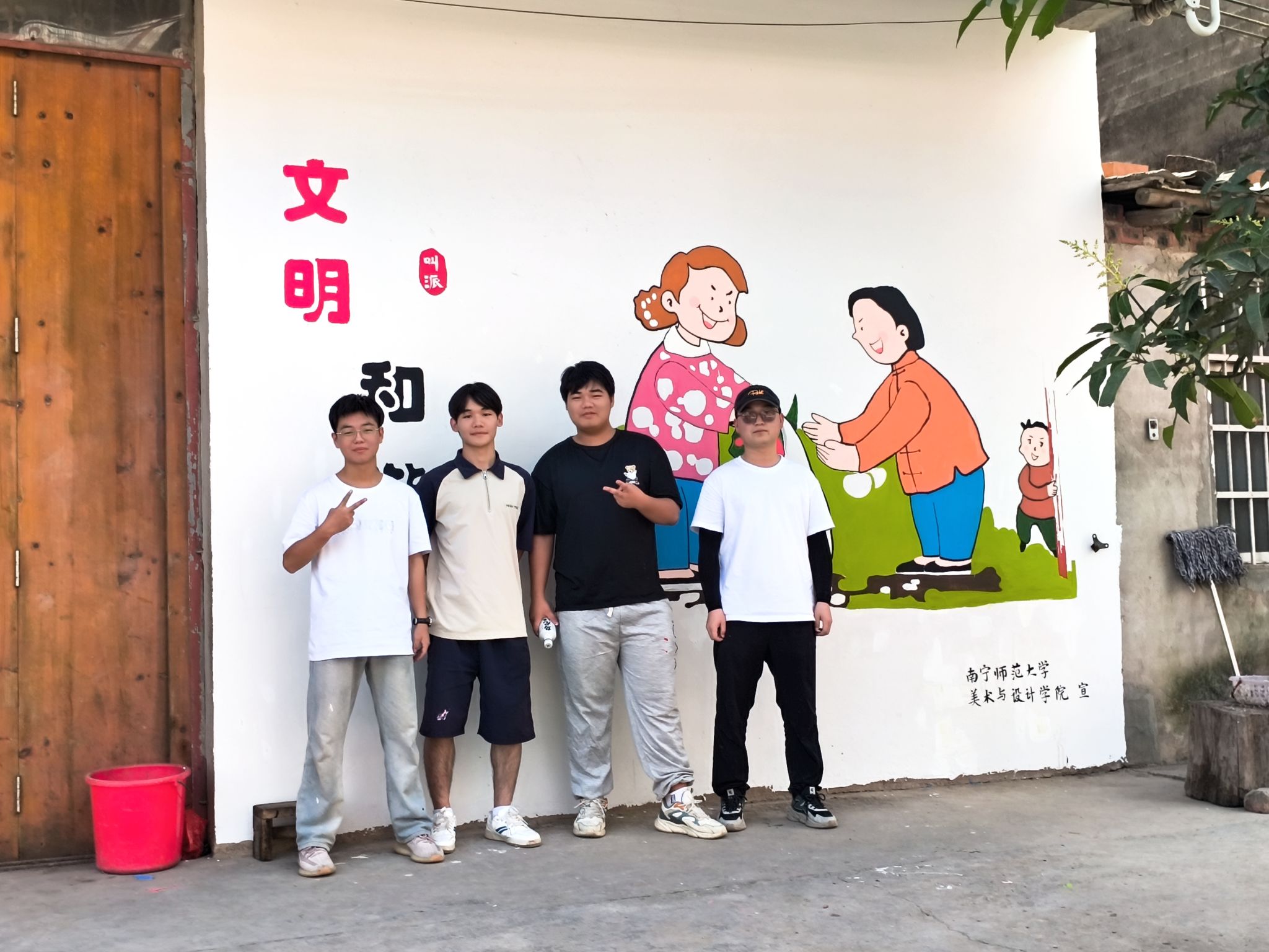 为学习贯彻党的二十届三中全会精神,发挥高校服务乡村文化振兴的专业优势,11月15日至17日,我校应邀派出美术与设计学院师生墙绘工作队一行26人赴完美(中国)定点帮扶村宁明县那陶村,开展了“三下乡”乡村振兴墙绘活动。