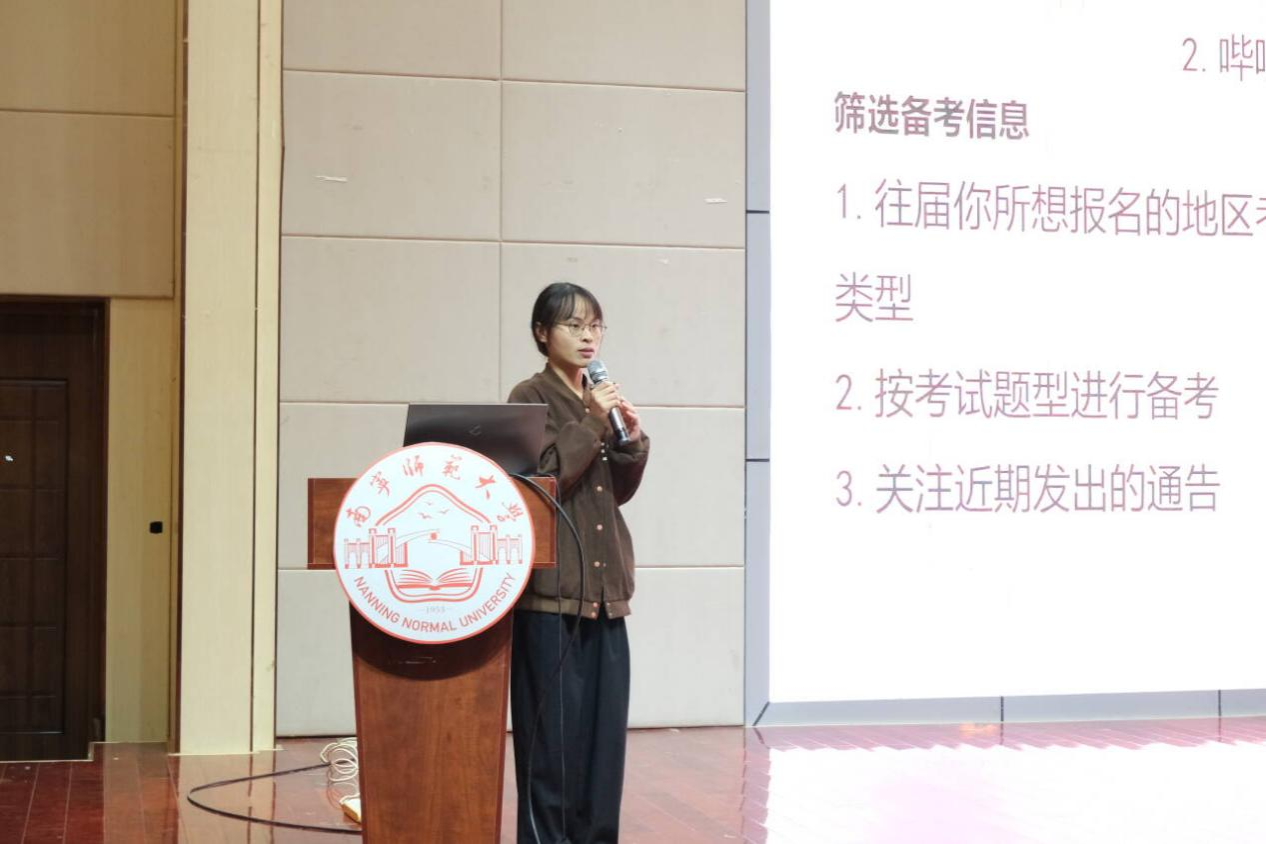 会议伊始,辅导员覃素芳介绍此次会议的目的和意义,激励未落实就业的毕业生总结经验,吸取教训,调整自己的就业目标,强化综合素质。随后,六位已落实就业单位的毕业生代表分别结合自身求职的经历分享经验。其中,23研究生班虞芸墁从求职前的准备、求职程序及求职细节等方面分享了自己作为区外毕业生回生源地工作的求职经历;21专升本2班林霞从教材处理、语音语调、板书等方面强调试讲技巧;21本科1班李洁则从岗位信息的来源、简历的投递、笔试与面试的准备四个方面进行分享;21专升本2班周宏杰用幽默风趣的语言从自身经历、文字表述、奖状荣誉等方面分享简历制作的要点;21本科2班岑雪萍和21专升本1班肖艳芳均以笔试和试讲的实际经历跟大家分享心态调整和软硬件准备。期间,大家还在互动环节就求职过程具体细节进行探讨。