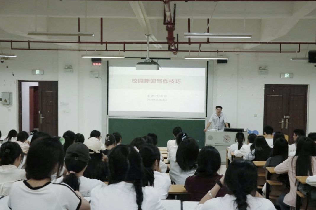 11月14日,校党委宣传部新闻中心干事甘友桓老师受邀于文综楼516教室为我院“青马班”学员讲授校园新闻写作技巧。